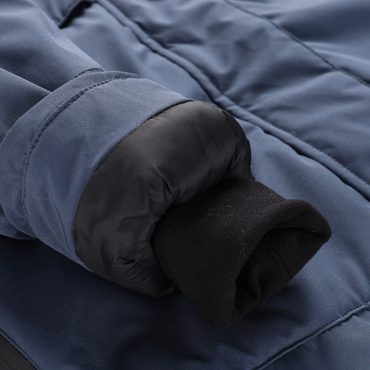Las características prácticas del abrigo incluyen una cremallera de doble sentido, mangas con puños interiores de punto que impiden la entrada de aire frío y ocho espaciosos bolsillos que ofrecen suficiente espacio para todos los objetos esenciales. El aspecto moderno se ve realzado por un discreto parche en la manga y una alta calidad de fabricación.