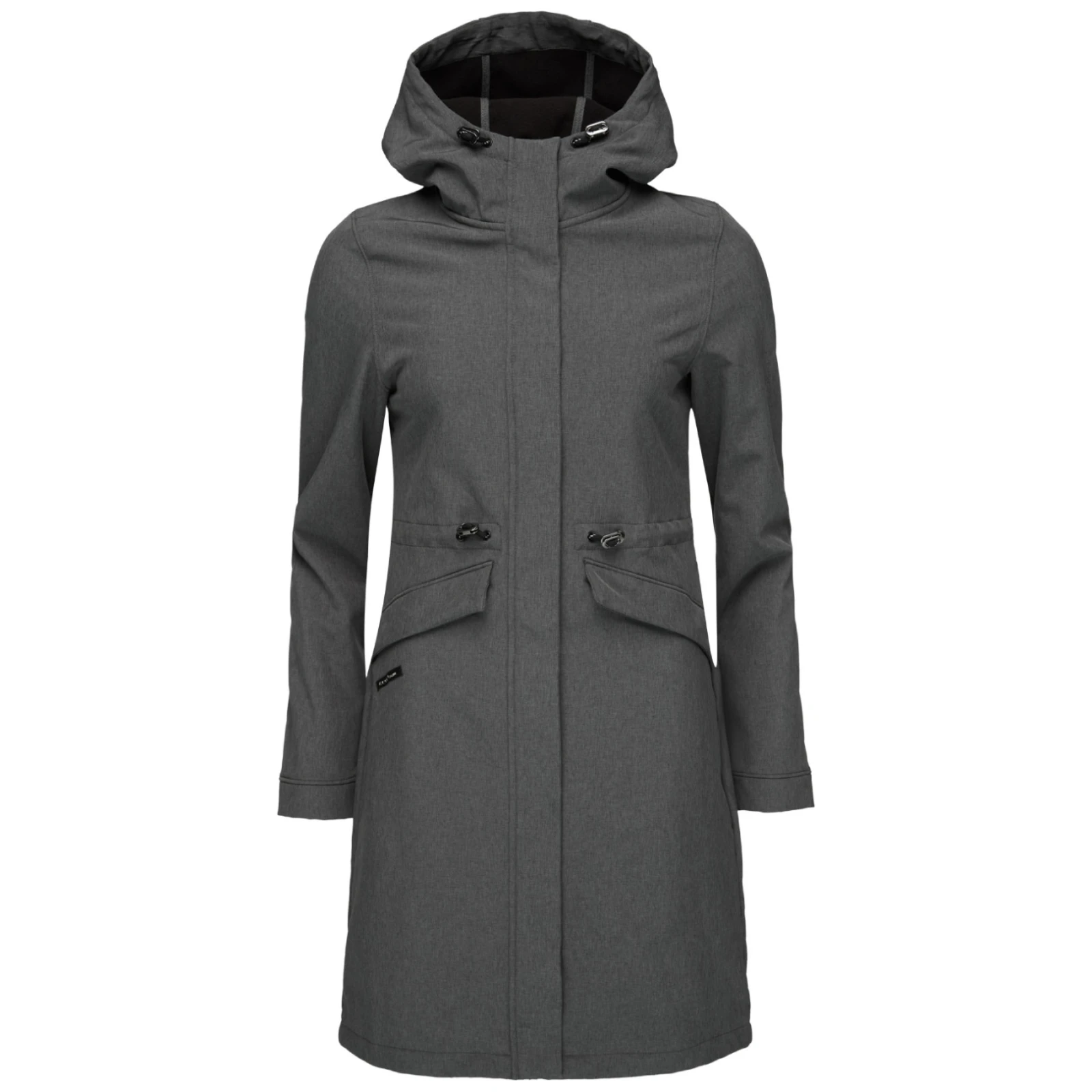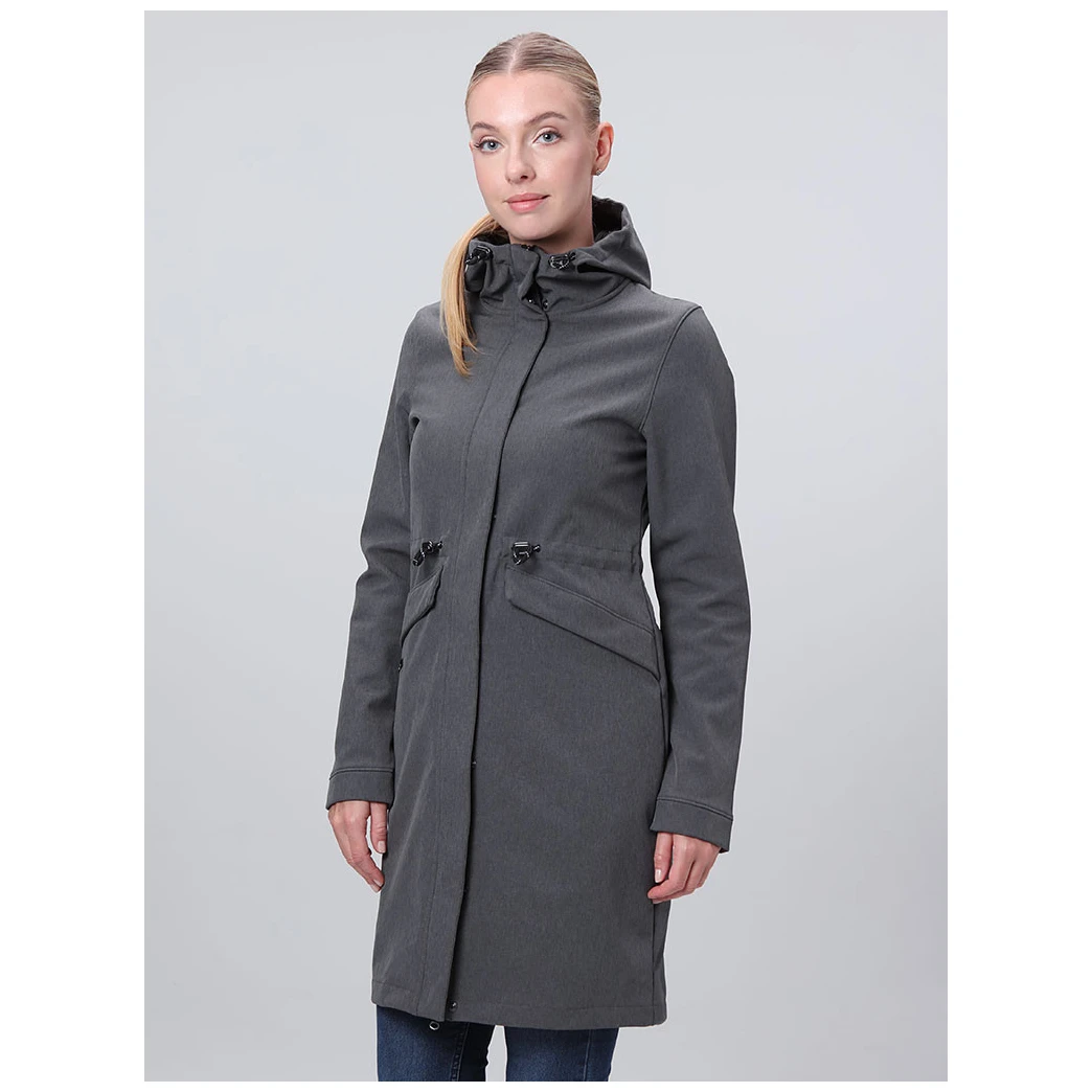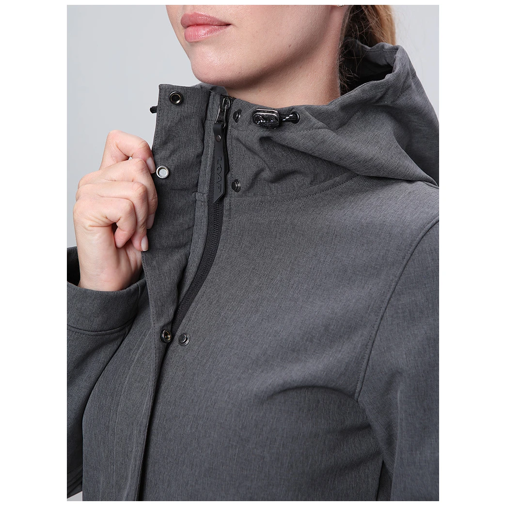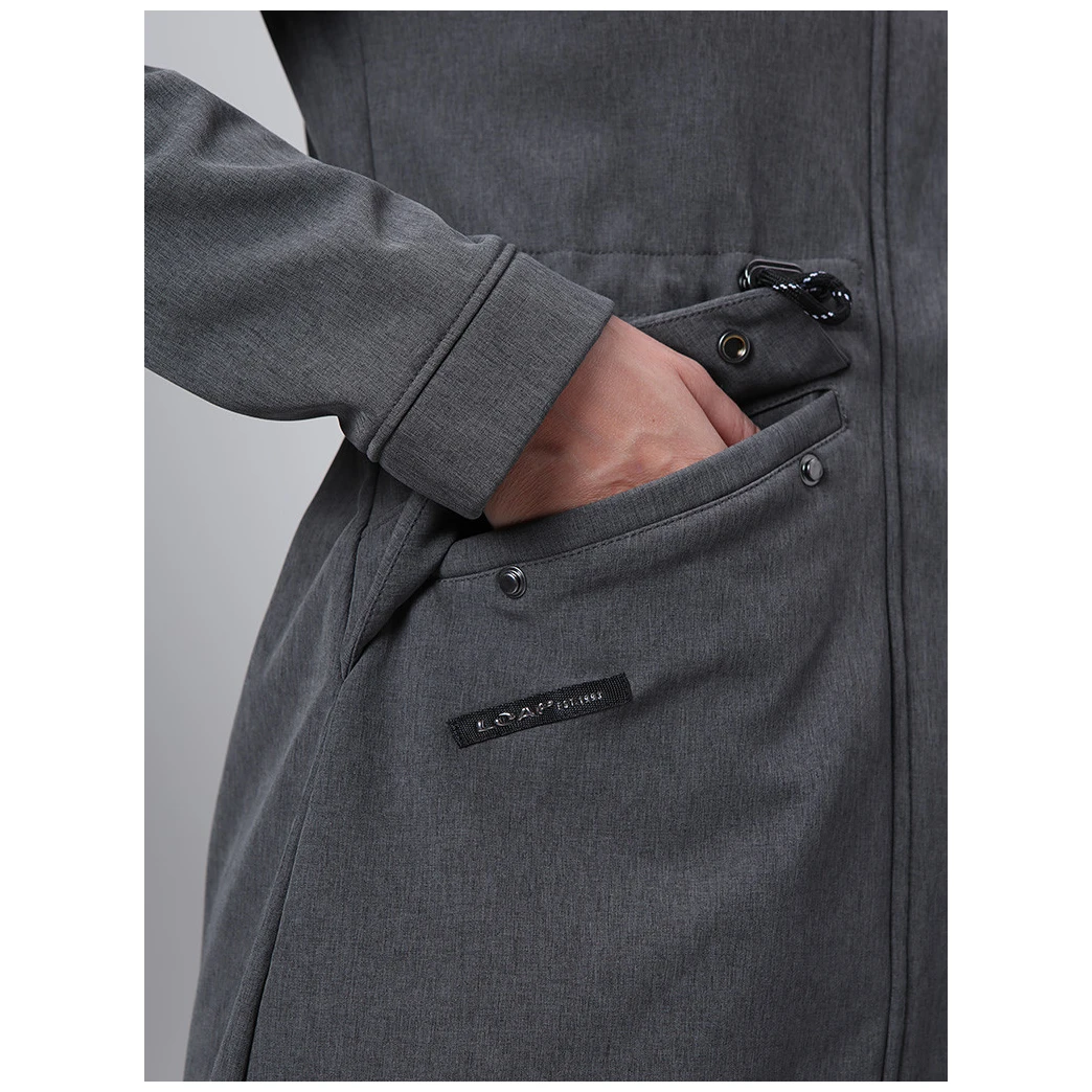 Abrigo de mujer Loap LUNARA es un abrigo softshell elegante y funcional con membrana impermeable AQUA PRO. Te mantiene seco y cómodo durante el otoño y la primavera.