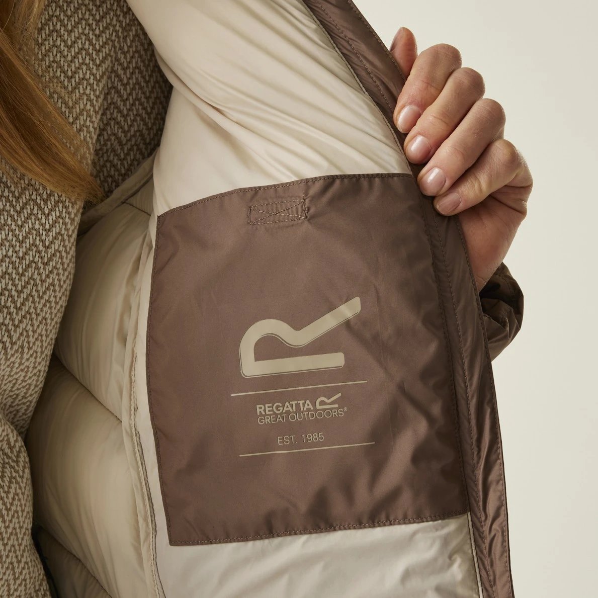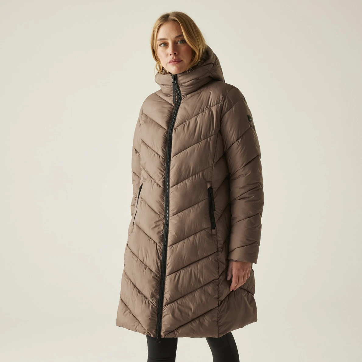 El abrigo de invierno para mujer Anita de la marca Regatta con aislamiento reciclado, tratamiento repelente al agua y una cómoda capucha es la opción ideal para el clima frío de invierno.