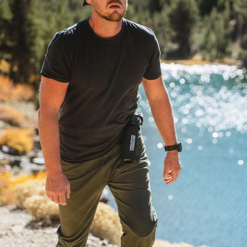 El SABRE Frontiersman + funda es un spray de defensa contra osos para excursionistas, recolectores de setas y guías que desean tener una protección fiable a mano en la naturaleza.