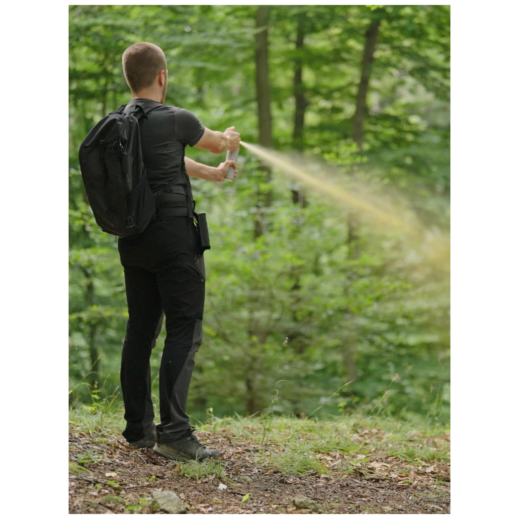 El spray contiene 2% de capsaicina, la cantidad máxima permitida de ingrediente activo para este tipo de spray. El volumen de 261 g asegura un suministro suficiente y un tiempo de pulverización de 7 segundos con un cono de 2 m² ayuda a cubrir el área incluso si el animal se mueve. Además, el seguro fosforescente es fácil de encontrar en la oscuridad, lo que te permite activar el spray rápidamente incluso en una situación tensa.