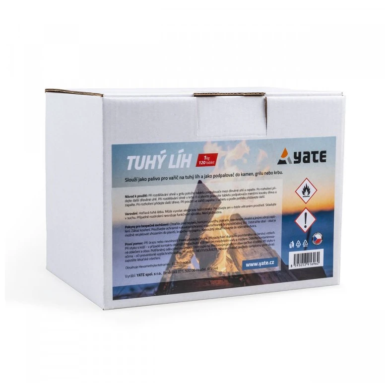Combustible para la estufa de alcohol sólido. También puede utilizarse para calentar estufas o chimeneas. Ahora convenientemente envasado en una caja.1 kg (aprox. 120 comprimidos). Media pastilla es suficiente para encender astillas de madera, utilice varias pastillas para encender carbón en la parrilla, dependiendo de la cantidad de carbón. Si se utiliza en una cocina de alcohol sólido, encienda una pastilla y añada más según sea necesario.
