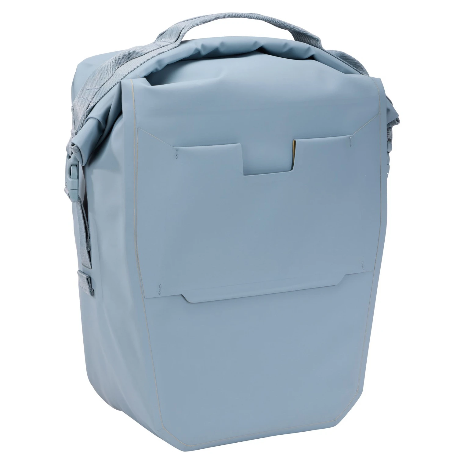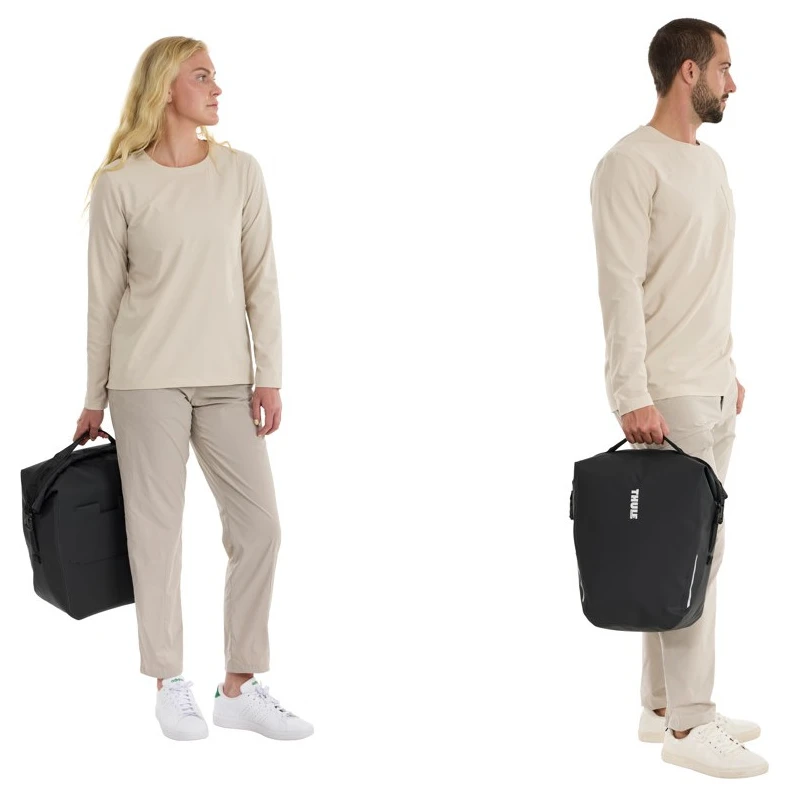 La bolsa de bicicleta Shield Pannier 22L de la marca Thule con cierre enrollable, ofrece materiales impermeables y un diseño elegante, lo que la hace cómoda de llevar también fuera de la bicicleta. La construcción con certificación IPX4 protege tus objetos de valor, mientras que los detalles reflectantes aumentan la visibilidad en la carretera.