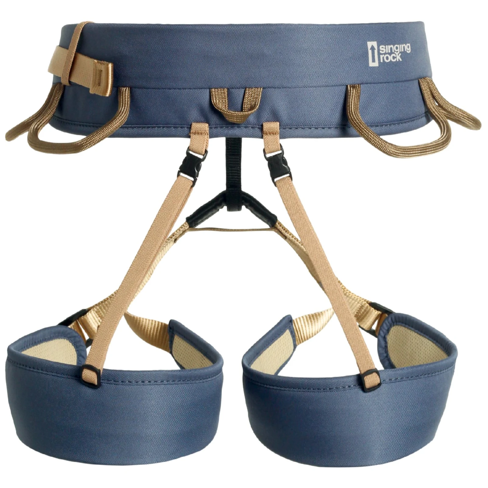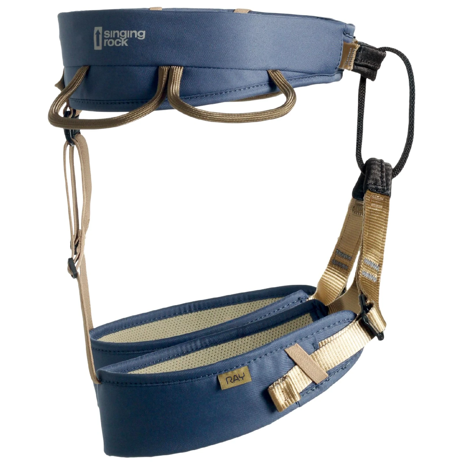 El arnés de asiento Ray de Singing Rock tiene 3 hebillas patentadas Rock&Lock que permiten un ajuste fácil y rápido del tamaño del arnés. Apriete muy suave gracias a la correa blanda y duradera. El material de malla interior absorbe bien el sudor y se seca rápidamente en condiciones húmedas. Puntos de amarre reforzados para una mayor durabilidad del arnés. El asiento tiene 4 bucles de material en dos tamaños con una capacidad de carga de 5 kg.