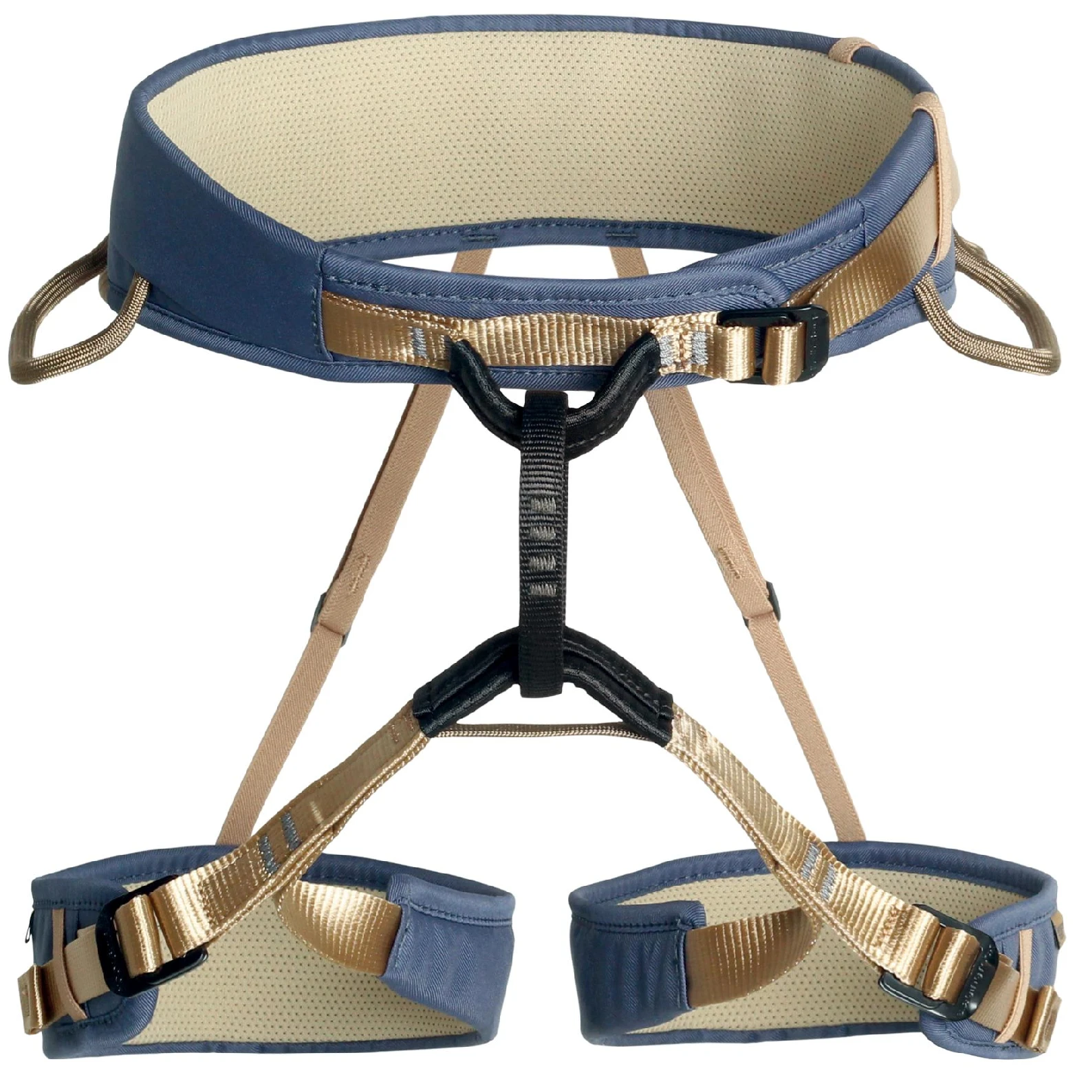 Arnés universal de tres hebillas con construcción cómoda, bajo peso y precio asequible, es adecuado para escaladores principiantes, rocódromos y centros de actividades al aire libre.