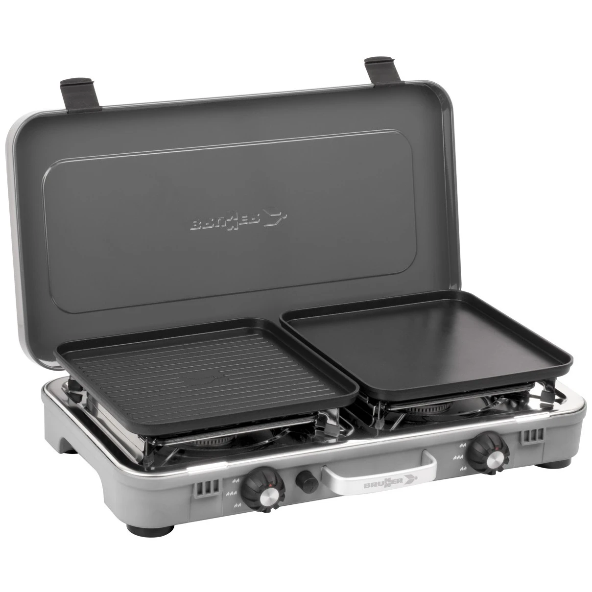 El grill independiente Devil Kookmaster de la marca Brunner se caracteriza por su rendimiento inigualable. Gracias a sus cuatro robustas patas y a la práctica bandeja, este elemento esencial de cocina aporta la cocina profesional al aire libre. El grill independiente Devil Kookmaster se entrega con una placa de parrilla lisa y una acanalada.