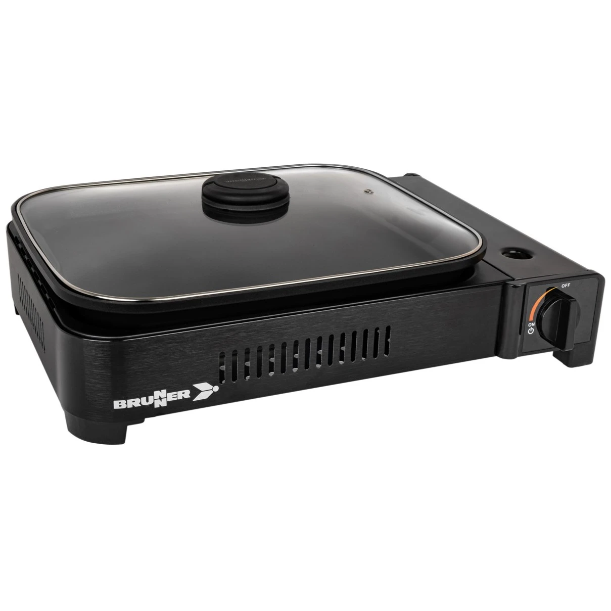 La parrilla de gas Devil Megagrill de la marca Brunner combina cocina y barbacoa. Dispone de una sartén/cacerola con tapa para asar y guisar. Ideal como parrilla de mesa portátil para acampar o hacer picnics, pero también se puede usar perfectamente en casa en balcones o terrazas.