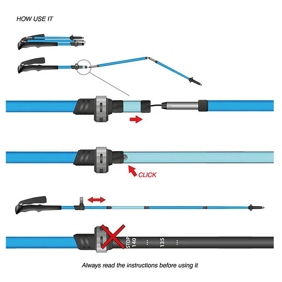 Los bastones fijos tienen una longitud fija que el usuario no puede modificar. El parámetro limitador de la longitud se equilibra con el menor peso posible.