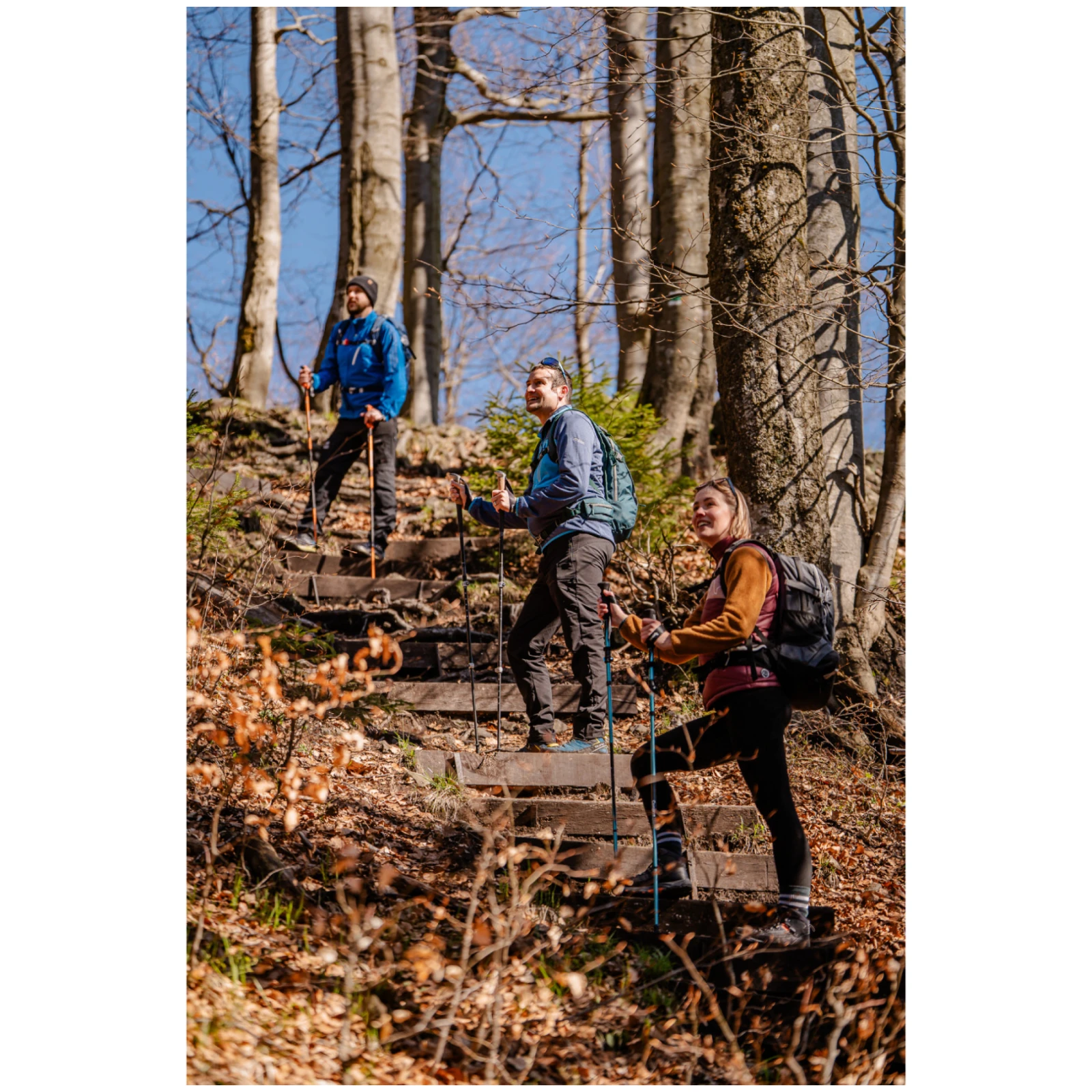 Los segmentos individuales están conectados por un cable de kevlar y, con un simple movimiento hacia abajo en la parte con el mango, todo el bastón se une en una sola pieza. Gracias a esta solución, los bastones no solo son más ligeros, sino también más compactos que los modelos telescópicos clásicos. La longitud final se ajusta fácilmente mediante el sistema de bloqueo rápido FastLock, que se puede manejar fácilmente incluso con guantes.
