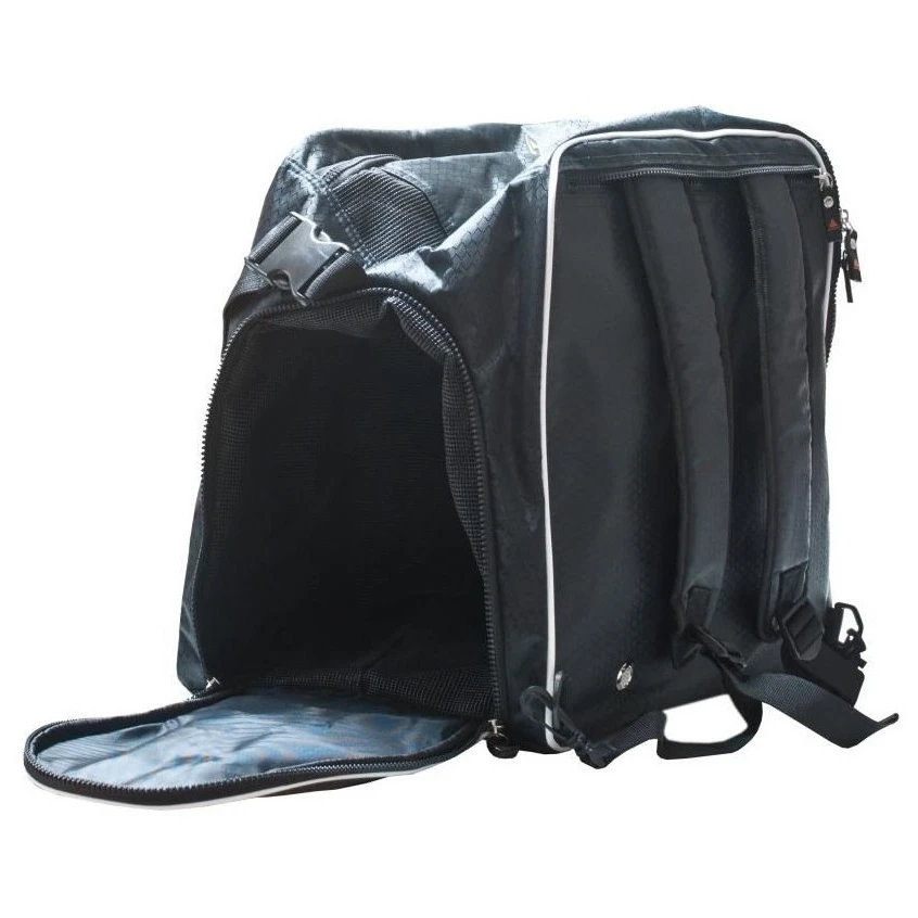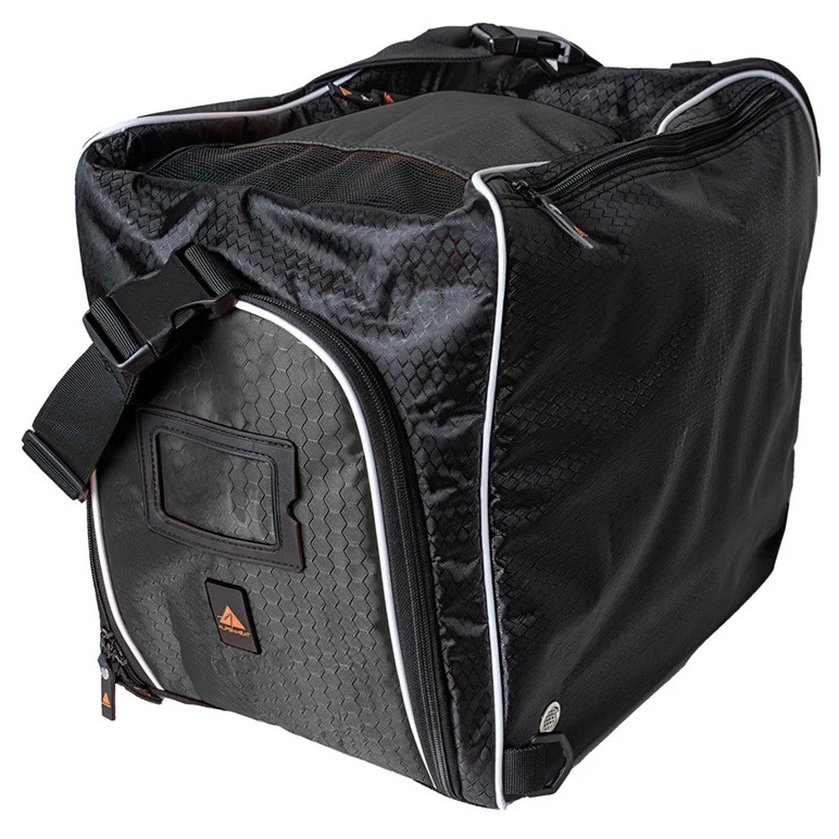 La bolsa deportiva de secado Fire Boot Bag de la marca Alpenheat es ideal para secar botas, botas de esquí, cascos, guantes y otros equipos. Está alimentada por una toma de corriente o un adaptador para coche, por lo que calienta las botas de esquí de camino a la pista o seca las botas de trabajo de camino a casa. Las aberturas de ventilación en la parte inferior aspiran aire frío y el aire caliente sale por las aberturas de la parte superior, lo que reduce el tiempo de secado. En el interior hay una sección separada para el casco o los guantes, y en el exterior hay un bolsillo para accesorios. La bolsa tiene una correa de hombro extraíble y correas para la mochila.