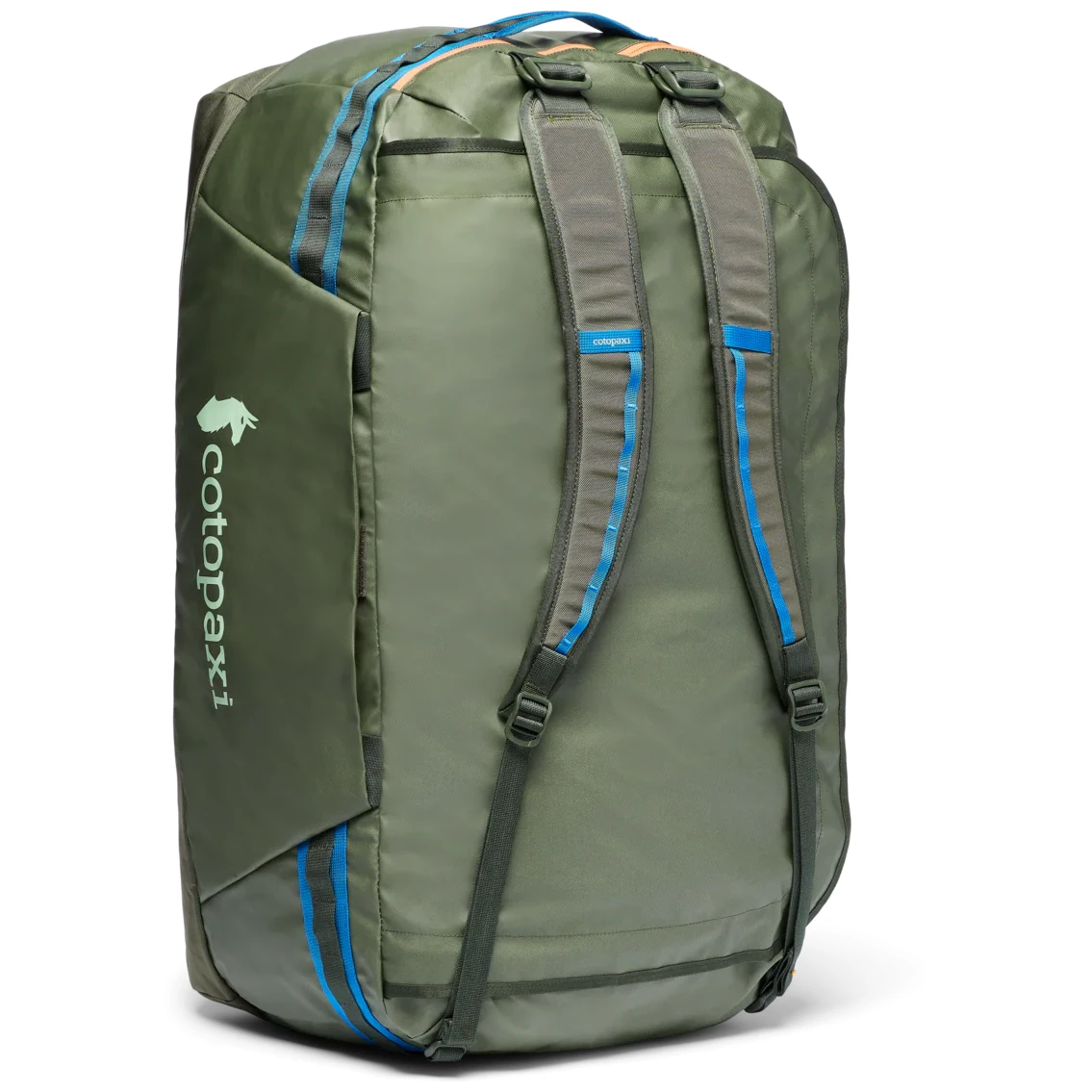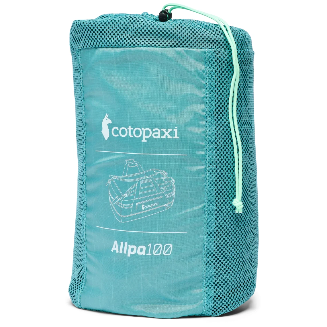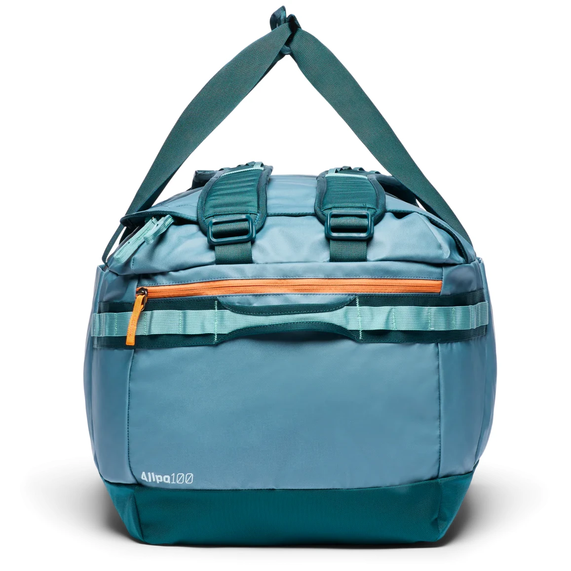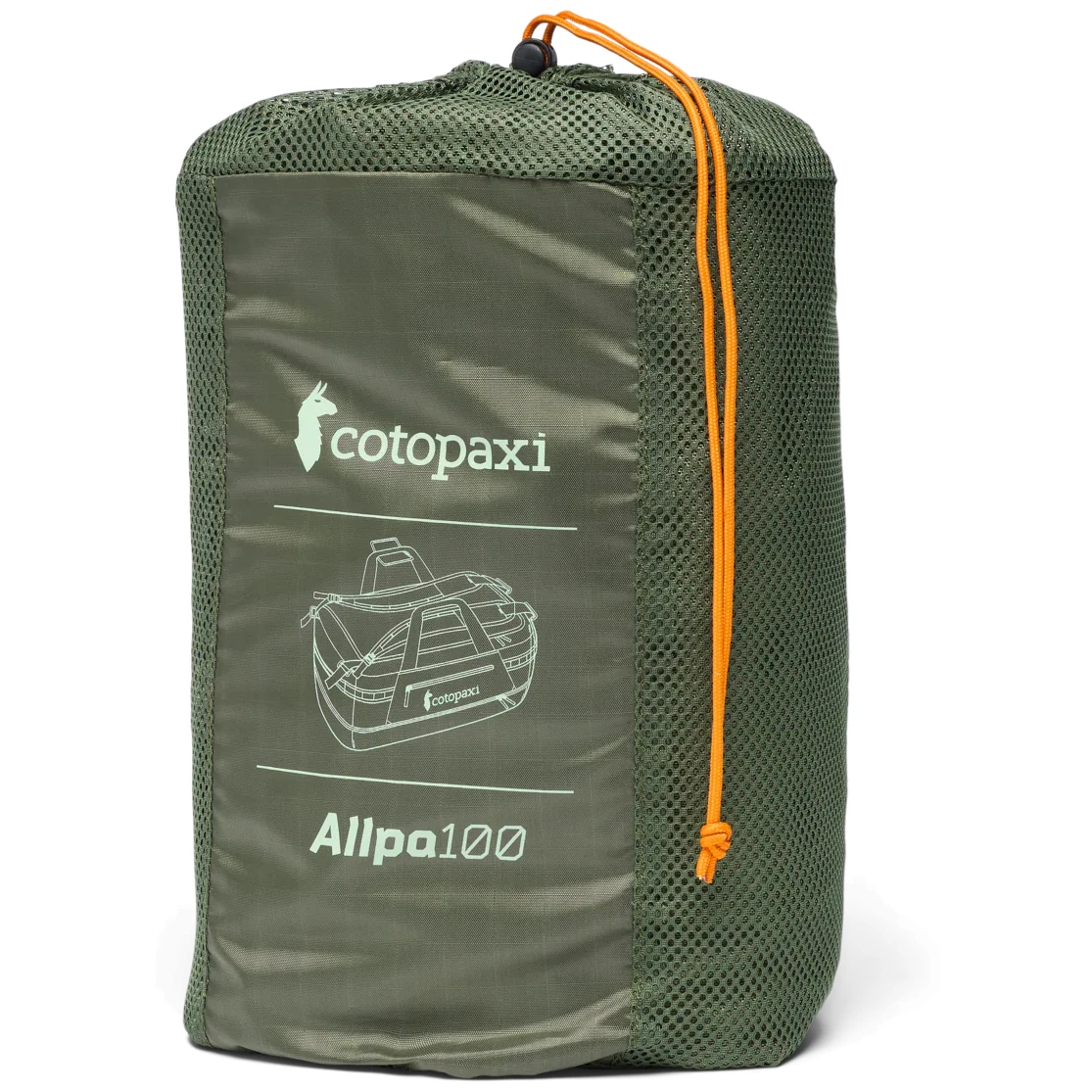 La bolsa de viaje Allpa Getaway 100L Duffel de la marca Cotopaxi ofrece suficiente espacio de almacenamiento sin ser pesada ni voluminosa. Gracias a su diseño robusto y materiales reciclados, la bolsa es un compañero fiable y, al mismo tiempo, respetuosa con el medio ambiente. La bolsa tiene correas acolchadas y, por lo tanto, se puede llevar en la espalda como una mochila.
