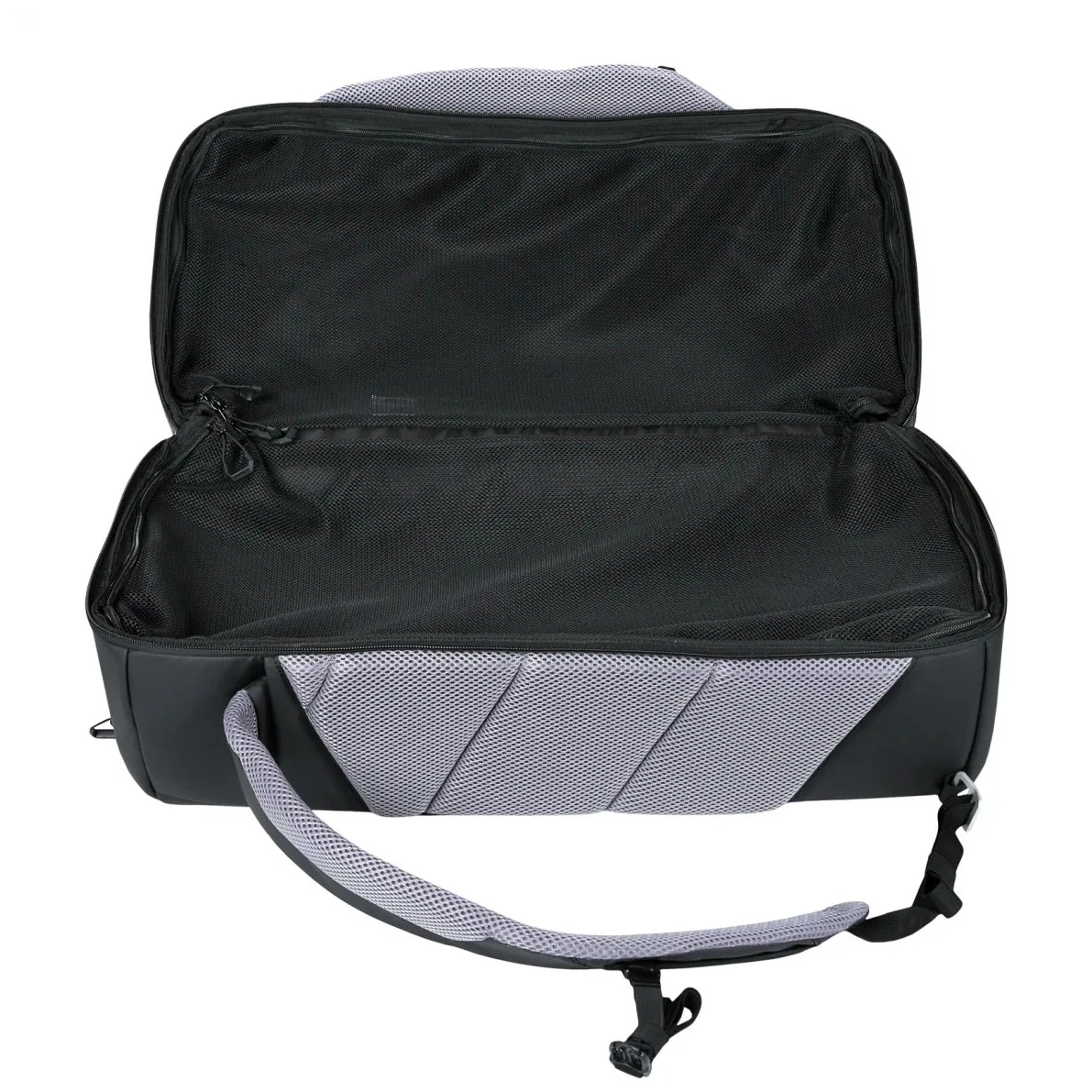 La bolsa está fabricada con un resistente nylon 600D con tratamiento impermeable TPU y la comodidad al llevarla la proporciona el sistema de respaldo AirMesh reforzado. Las correas de los hombros se pueden ocultar cuando se lleva como una bolsa clásica, mientras que el sistema de transporte complementado con una correa para el pecho permite transportarla cómodamente incluso en viajes más largos. Dos compartimentos principales tienen una amplia abertura con cremallera para facilitar el embalaje y el acceso a tus pertenencias.