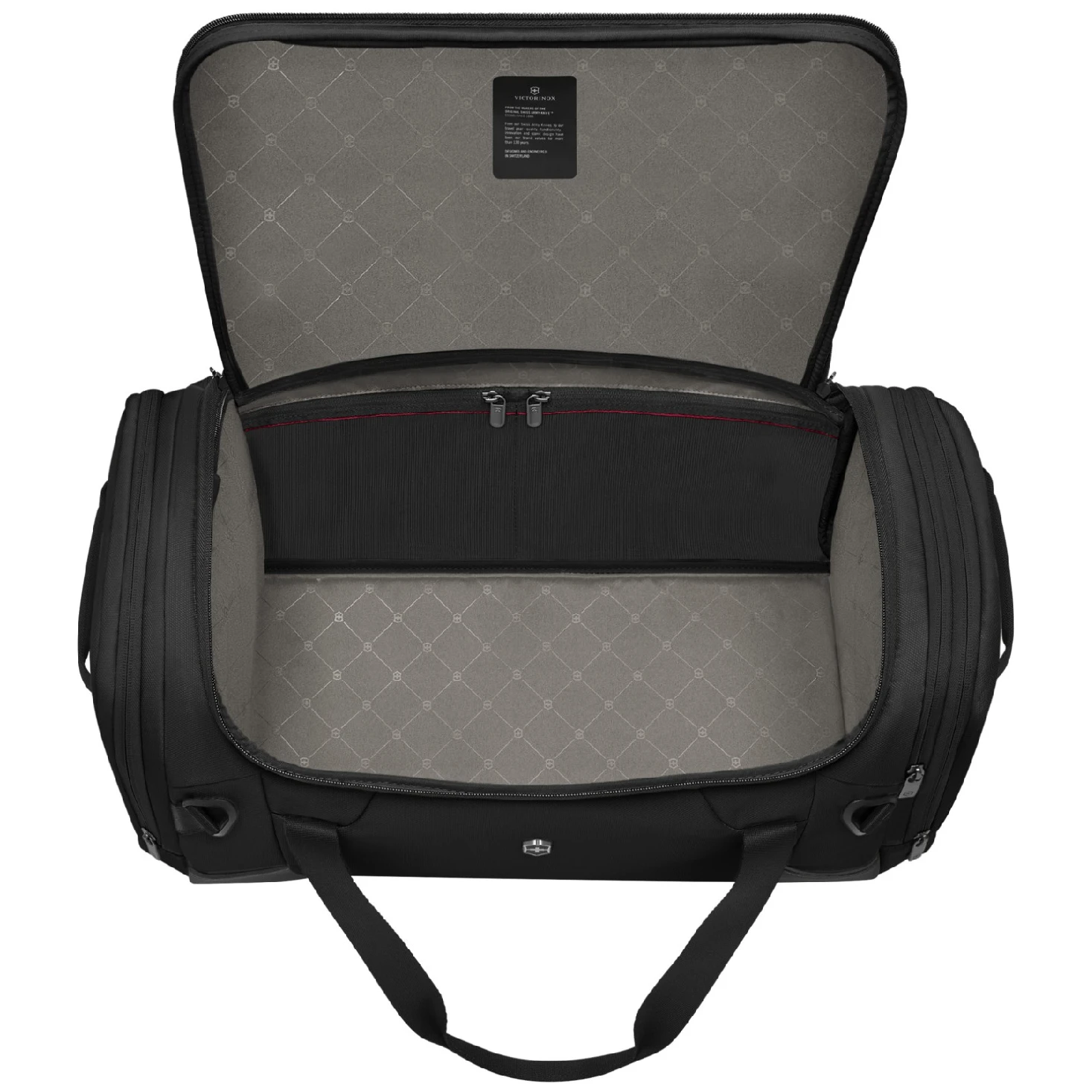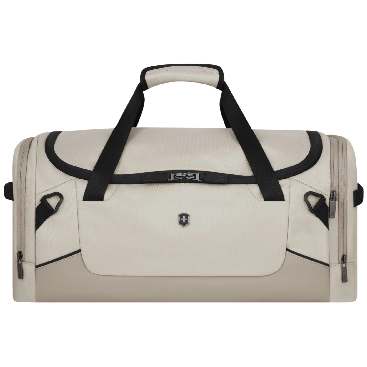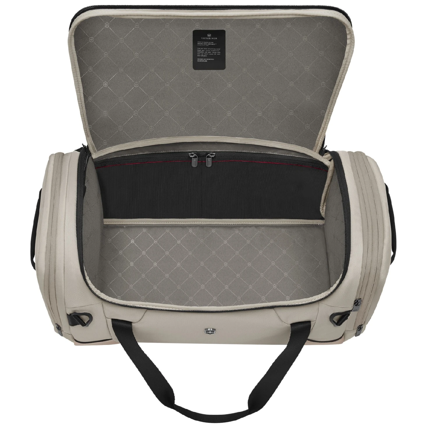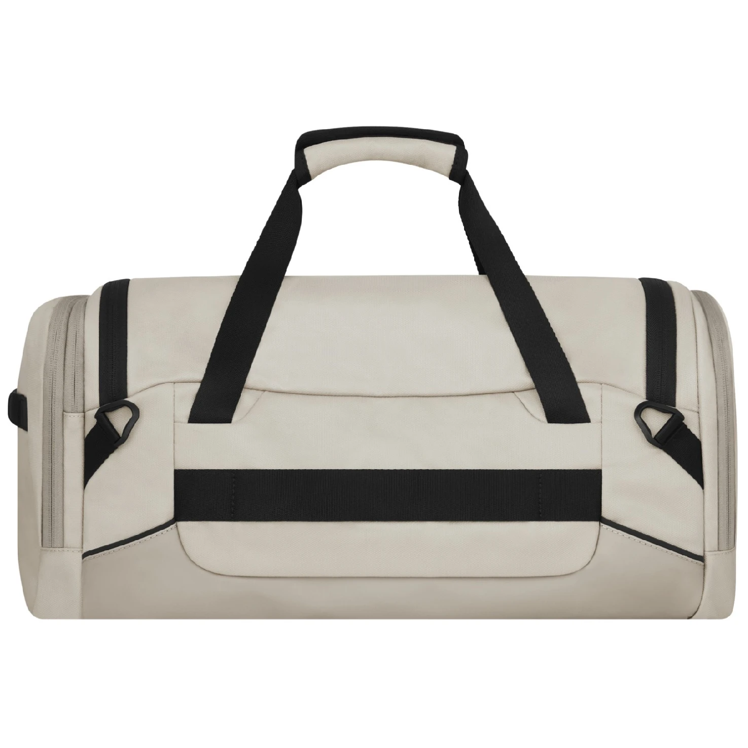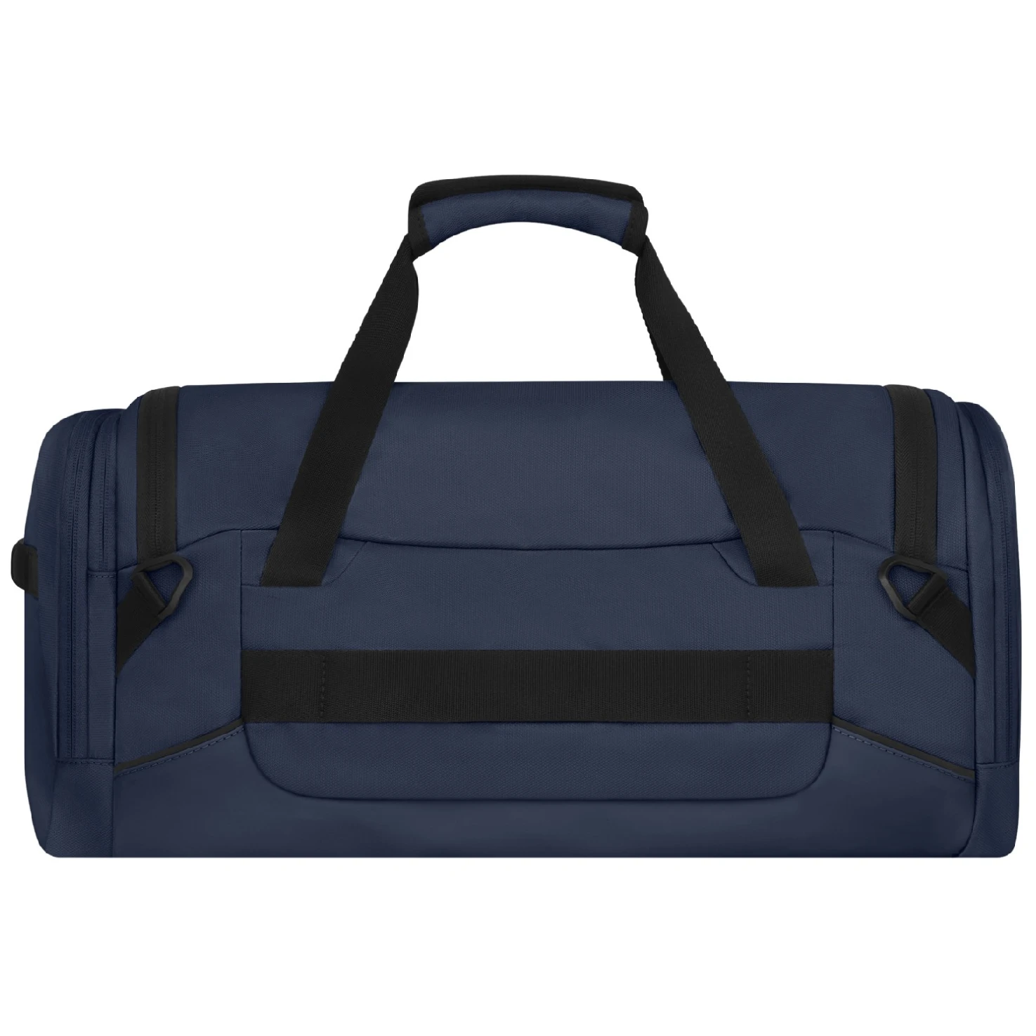 La bolsa está hecha de poliéster reciclado duradero (rPET), que es resistente al agua y a la abrasión y mantiene su solidez del color. No falta una correa de hombro desmontable, asas acolchadas y asas laterales para un manejo cómodo en diversas situaciones.
