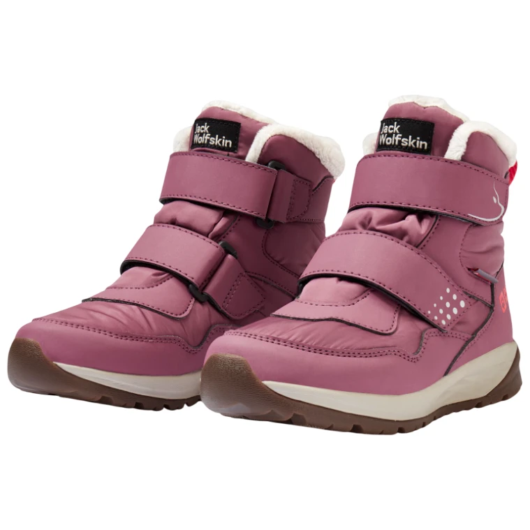 Las botas de invierno para niños Polar Bear-G Texapore Mid Vc K de la marca Jack Wolfskin son una opción ideal para el clima frío e impresionan por su calzadura práctica y rápida, gracias al cierre con doble correa de velcro y una correa para calzar. La parte superior está hecha de un tejido ligero y sintético con una membrana Texapore impermeable y transpirable, para que pueda caminar por los charcos sin mojarse los pies. Para mayor calidez, cuenta con un forro polar Texawarm extracálido.