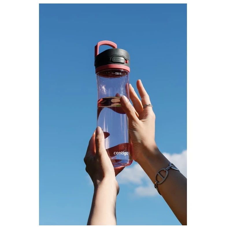 La botella de agua Jackson de 720 ml de la marca Contigo está hecha de un innovador material Tritan, que contiene un promedio del 50 % de material reciclado. Este plástico de alta calidad es absolutamente ideal para uso repetido. No tiene que preocuparse por los olores desagradables que puedan acumularse en la botella, ni por las manchas antiestéticas de las bebidas.