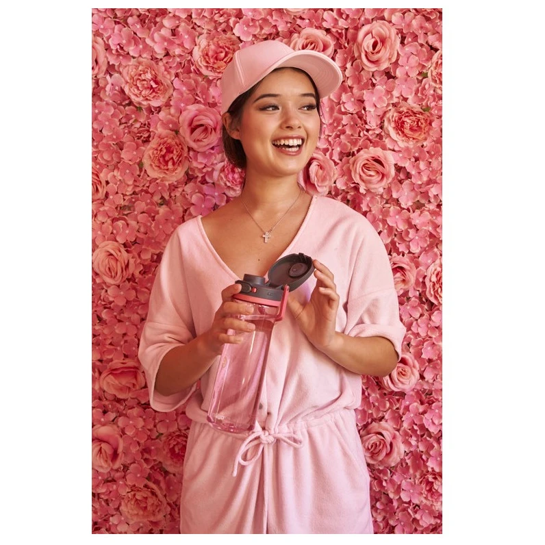 La botella es a prueba de fugas y tiene un cierre de botón que evita derrames accidentales. La botella tiene un asa práctica para facilitar su transporte y una tapa protectora que la mantiene limpia de suciedad y polvo. La tapa y el cuerpo se pueden lavar en el lavavajillas en la rejilla superior. Adecuado para la mayoría de los portavasos de coche y bicicleta. En posición abierta, el producto no es a prueba de derrames, por lo que recomendamos transportarlo en posición vertical.
