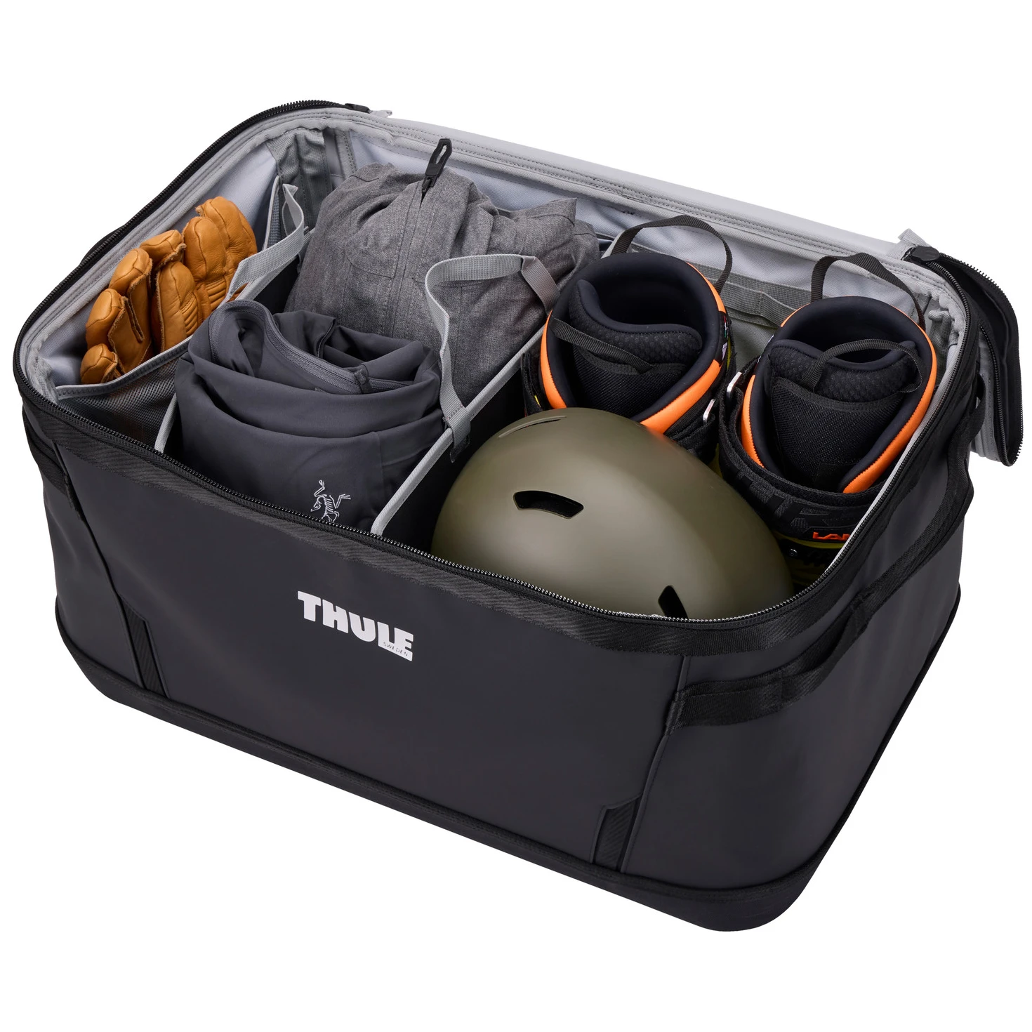 Espacioso y duradero baúl de equipo Thule Chasm GearHualer 80 con una construcción semirrígida que mantiene su forma. Este baúl de equipo de 80 l facilita el embalaje y el acceso al equipo. La tapa con cremallera proporciona protección durante el transporte y se abre cómodamente mediante un cierre magnético para un acceso rápido. El panel divisor extraíble y los bolsillos interiores permiten adaptar el espacio de almacenamiento a tus necesidades.