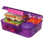 Sistema Bento Lunch To Go con un volumen total de 1,65 L ofrece varios compartimentos extraíbles y un recipiente de 150 ml con tapón de rosca para yogur, frutos secos o crema para untar. Los compartimentos individuales se introducen en la caja y se cierran con una abrazadera resistente. La caja está fabricada en plástico sin ftalatos ni BPA y es apta para lavavajillas, microondas y congelador.