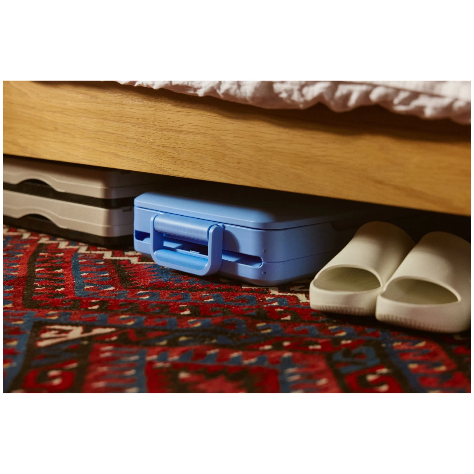 El interior está formado por un suave inserto extraíble de TPU con tratamiento antibacteriano, que previene la aparición de olores desagradables y la proliferación de bacterias. La construcción es impermeable, la funda se puede extraer y lavar fácilmente, por lo que el mantenimiento es rápido y sencillo. Para un transporte cómodo, cuenta con dos robustas asas laterales, que permiten levantar la caja incluso cuando está completamente cargada.