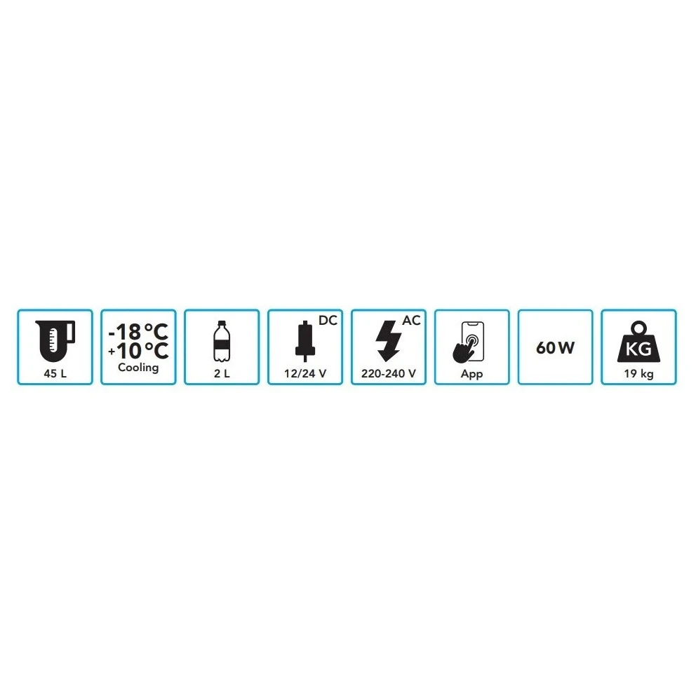 Tiene un rango de refrigeración de +10 °C a -18 °C. Esto significa que también puedes utilizarlo como congelador. Basta con ajustar la temperatura deseada mediante la pantalla táctil LCD de la caja. La temperatura ambiente no afecta al rendimiento de refrigeración de esta nevera, por lo que siempre podrá disfrutar de un refrescante helado delante de su caravana Este refrigerador tiene la misma capacidad de refrigeración a 12 V que a 230 V. En otras palabras, puedes utilizarlo en el coche, pero también enchufarlo a una toma de corriente. Para ello necesitas un adaptador (incluido).