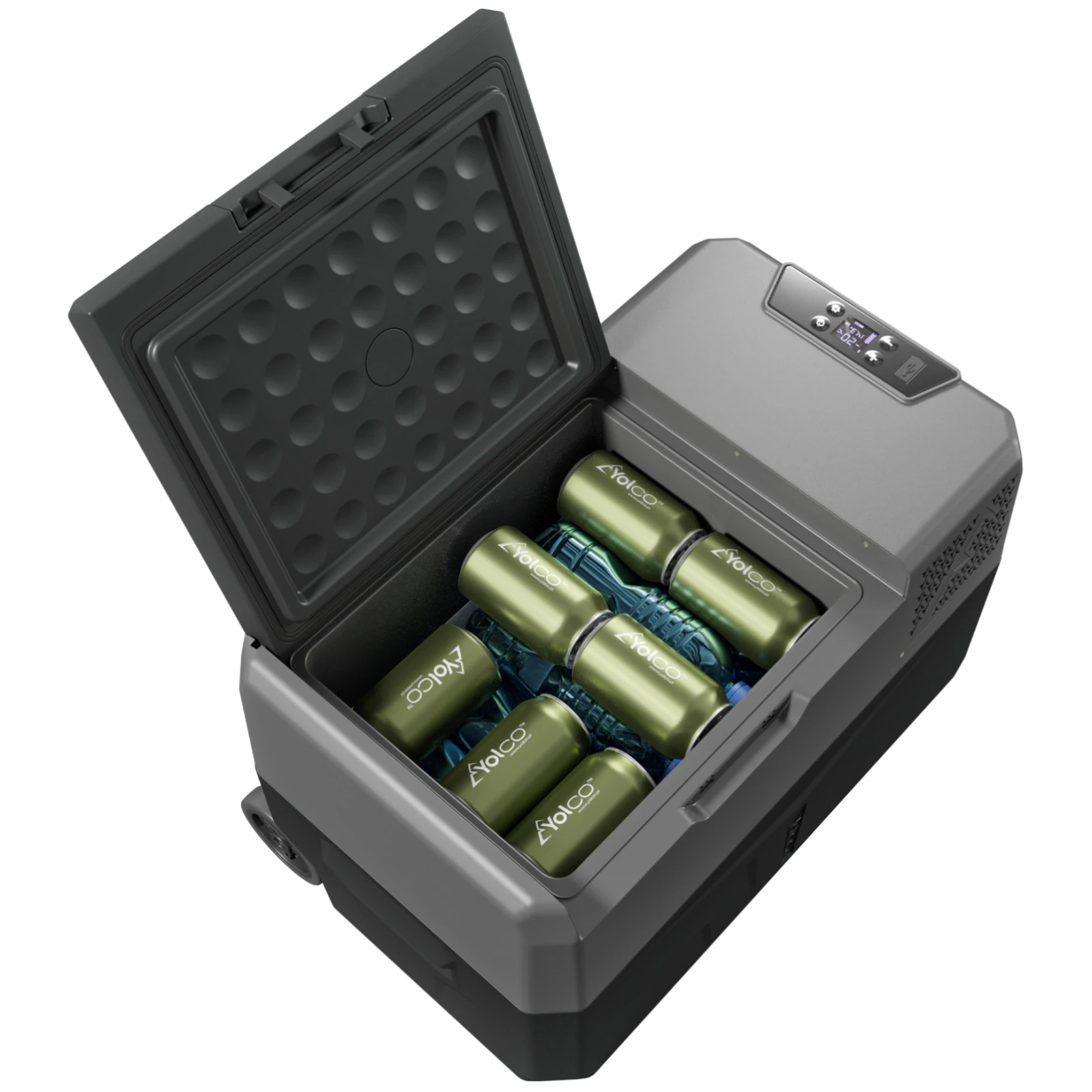 Yolco BCX30 es una nevera portátil compacta pero potente que puede tanto enfriar como congelar hasta −20 °C. Gracias a la tecnología de compresor, enfría de manera eficiente, rápida y confiable, con un consumo mínimo de energía. La solución ideal para viajes, campamentos y casas de campo.
