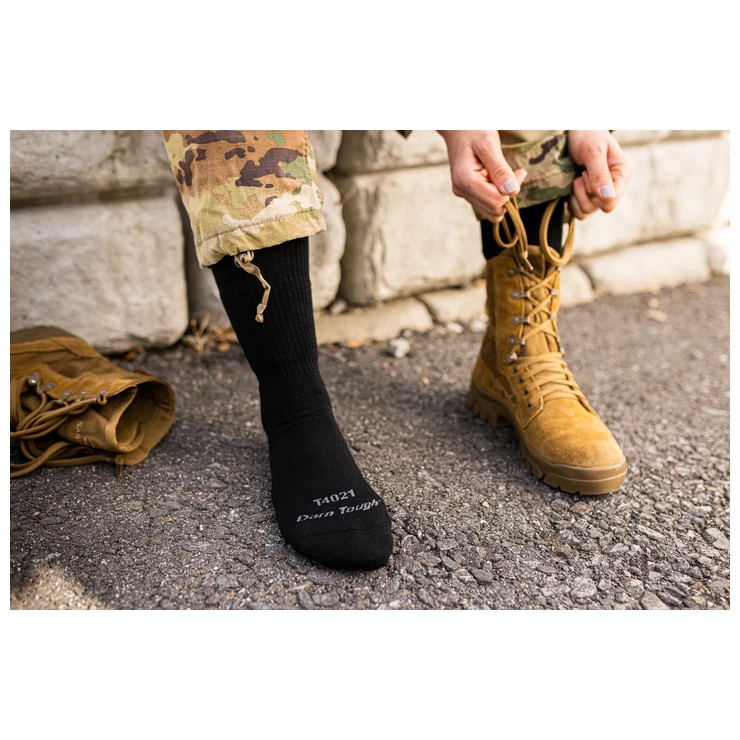 Estos calcetines tácticos unisex de altura botín son uno de los modelos más versátiles de la gama Darn Tough. Gracias a su gramaje medio, ofrecen una combinación equilibrada de confort térmico, transpirabilidad y protección, y son adecuados para su uso durante todo el año en terrenos difíciles y durante largos servicios.