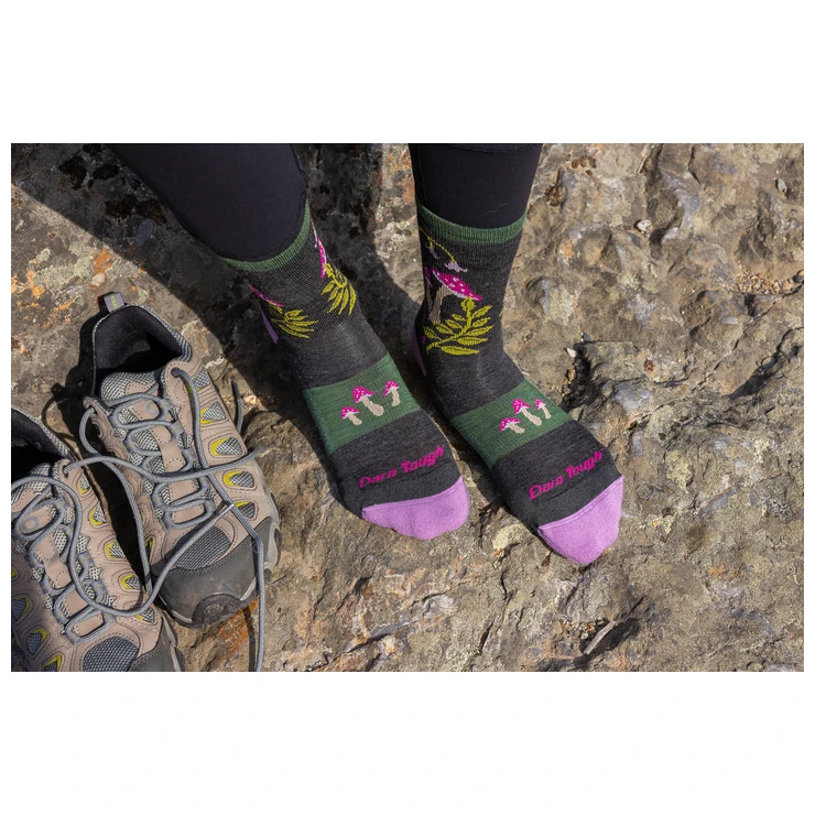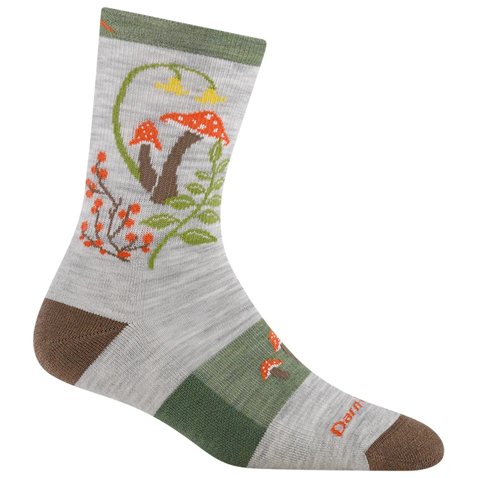 Los calcetines de mujer Mellow Mushrooms Micro Crew con Acolchado Ligero combinan un acolchado ligero, transpirabilidad y un ajuste fiable para mayor comodidad al caminar por los senderos. La altura micro tripulación es de aproximadamente 19 cm desde el talón hasta el borde y los calcetines llegan unos 13 cm por encima de la bota de senderismo baja, o ligeramente por encima del borde de una bota de montaña clásica.