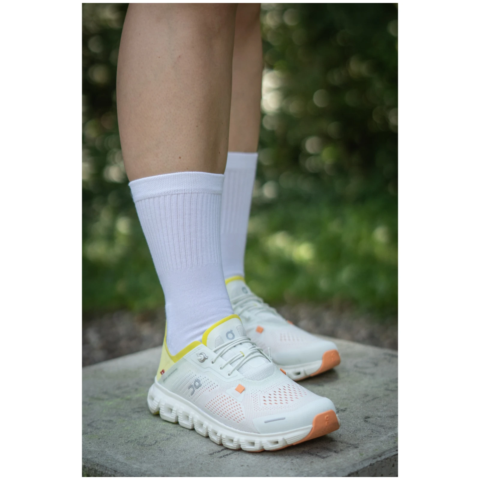 La combinación de materiales naturales y funcionales (modal, algodón, poliamida, polipropileno y elastano) proporciona una comodidad, transpirabilidad y resistencia óptimas. Gracias al alto contenido de modal y algodón, los calcetines son suaves al tacto, mientras que la mezcla de fibras funcionales ayuda a evacuar la humedad y aumenta la vida útil del material.