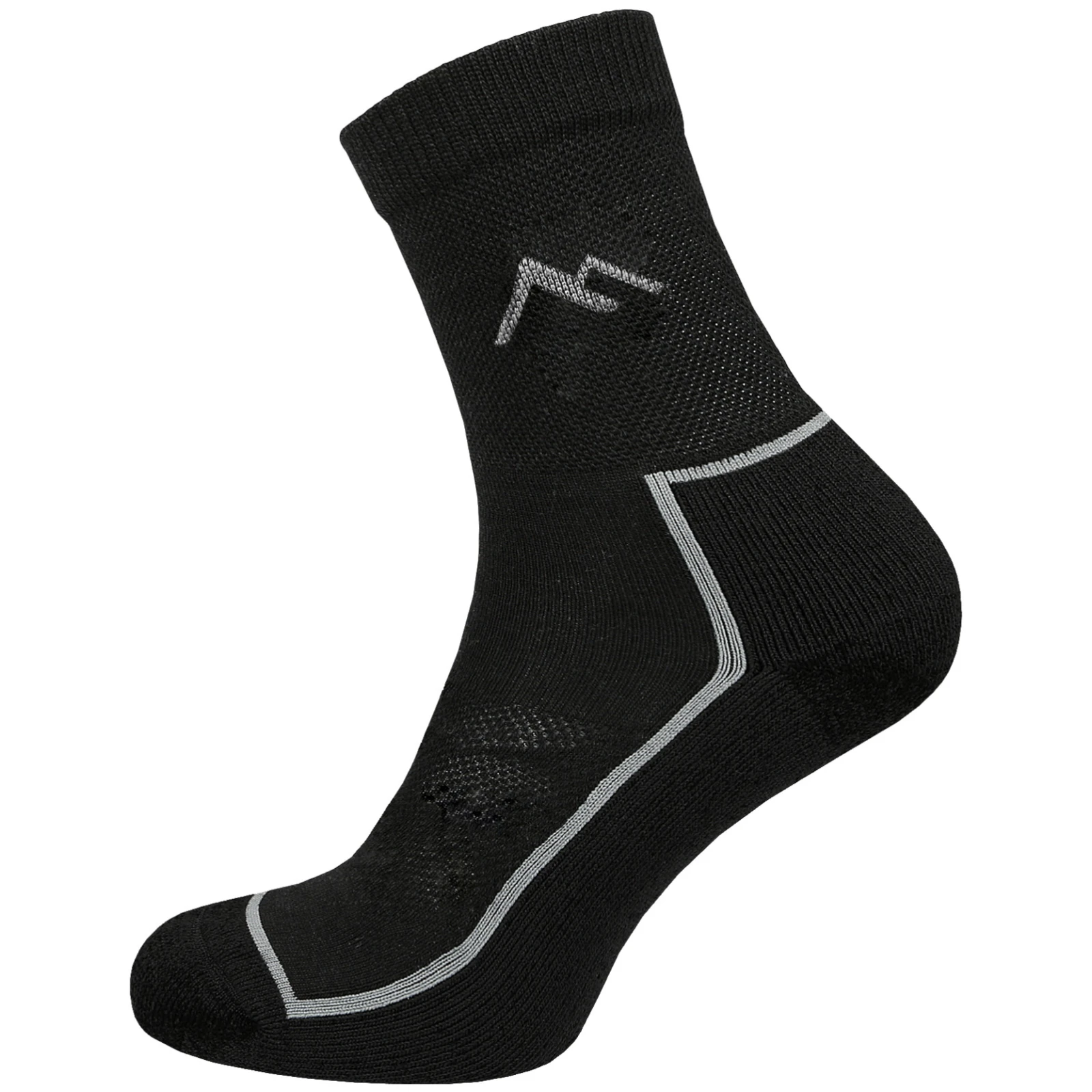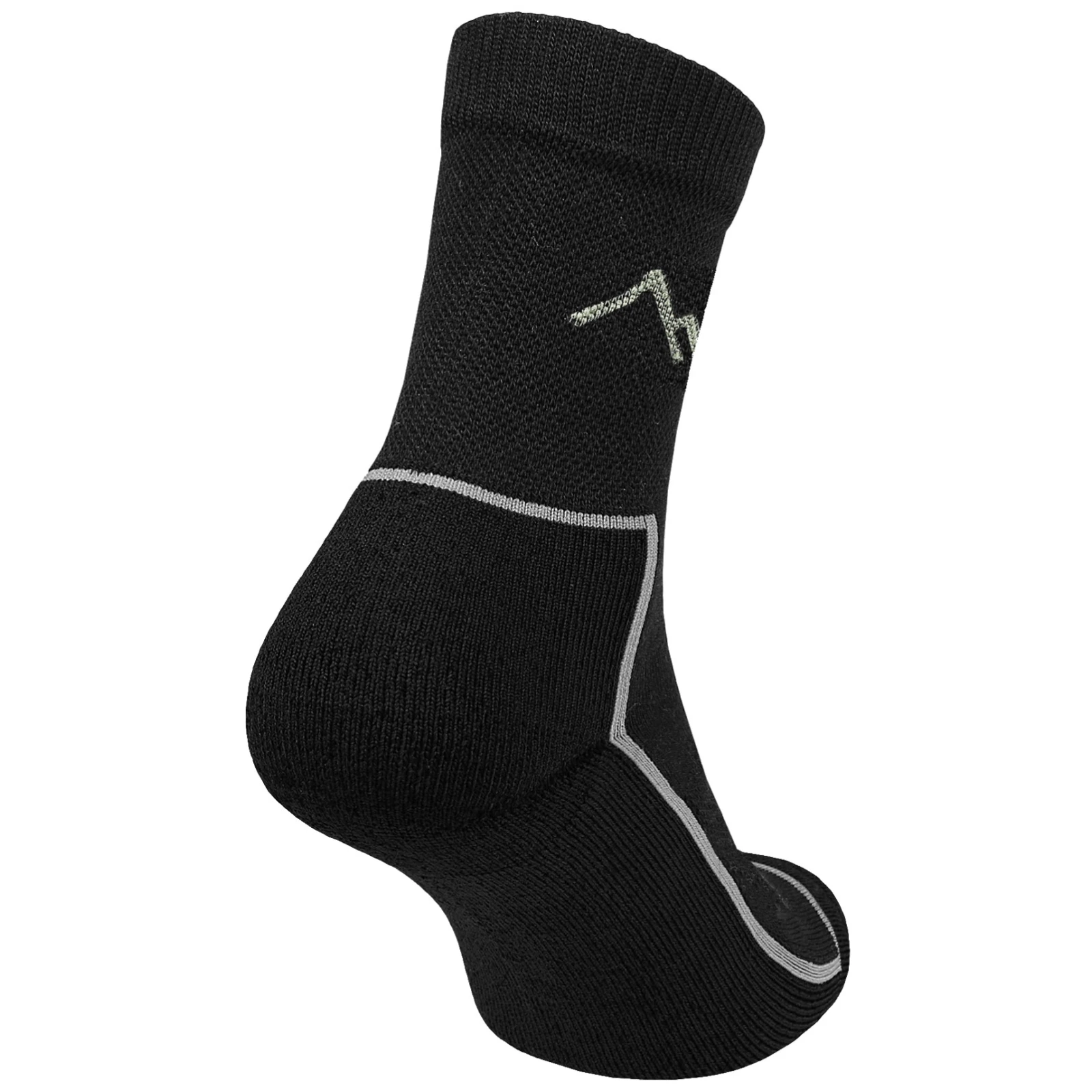 La combinación de lana merino suave y fibras sintéticas resistentes proporciona unas propiedades de aislamiento equilibradas y un alto nivel de confort. La lana merino es agradable al tacto, tiene propiedades antibacterianas naturales y una excelente termorregulación. Las fibras sintéticas, por su parte, evacuan rápidamente el sudor, por lo que los calcetines se adaptan fácilmente a la intensidad de tu movimiento.