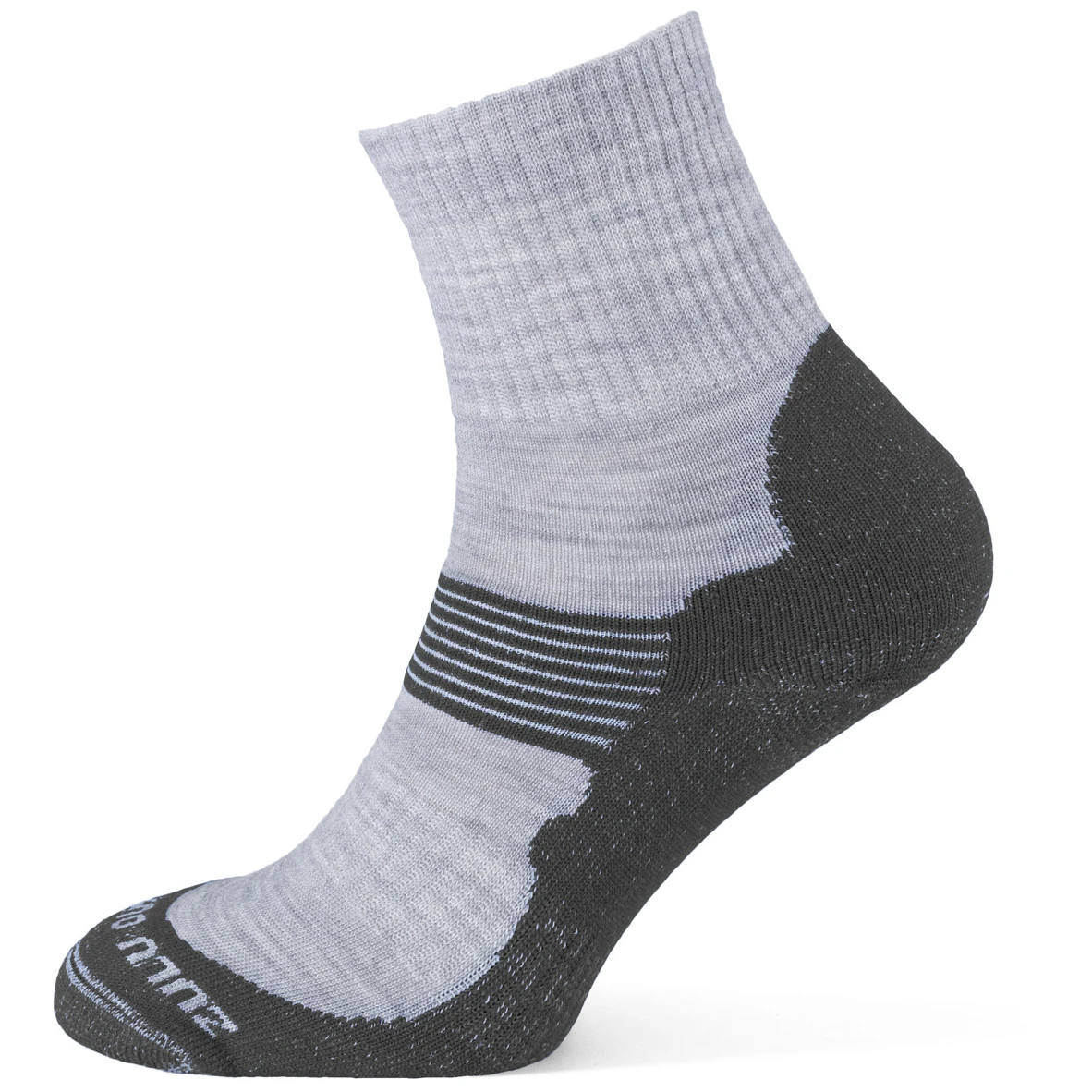 Calcetines Merino Allseason asequibles creados para senderismo o trekking en condiciones más cálidas. Un acolchado muy bueno y eliminación de la humedad. Mantienen el pie constantemente cómodo, incluso durante actividad física exigente y de larga duración. La combinación de lana merina con fibras sintéticas garantiza unas propiedades aislantes equilibradas con el máximo nivel de confort.