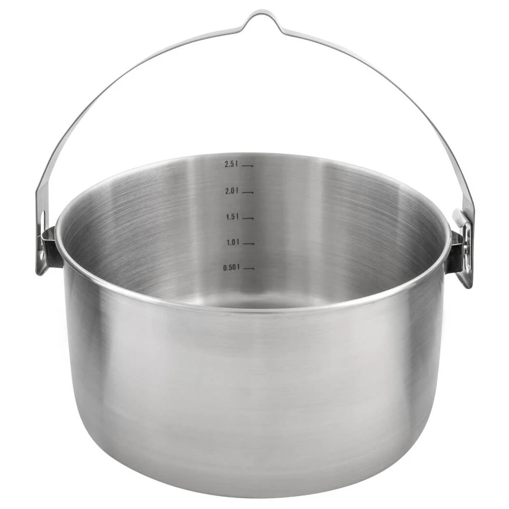 La Kettle II de 2,5 l de la marca Tatonka es una práctica olla de acero inoxidable con una capacidad de 2,5 litros, que apreciará en cada cocción al aire libre. Está fabricada con acero de alta calidad 18/8, es resistente, segura para los alimentos y totalmente no tóxica, sin PFC/PFAS. Gracias a su robusta construcción, es prácticamente irrompible y fácil de limpiar, por lo que es ideal para trekking, camping y festivales.