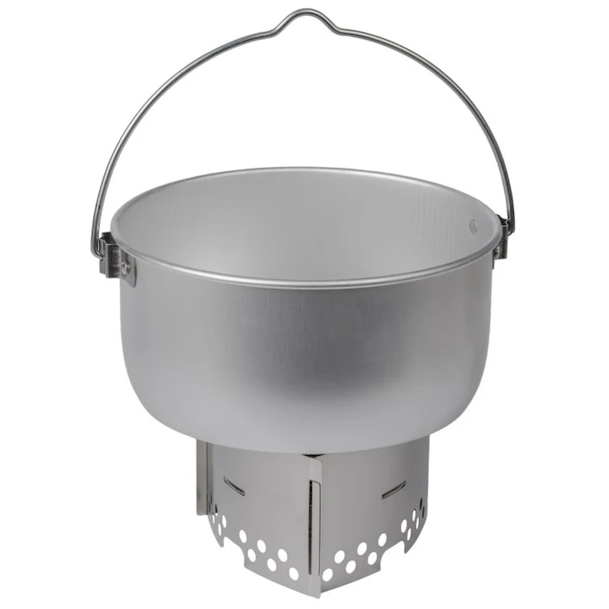 Adecuado para paravientos Trangia 27. Utilizar en paravientos con soportes en posición elevada, al igual que para la sartén. En el cazo se puede guardar un hornillo entero de tamaño 27. También se puede utilizar en diferentes fuentes de calor.