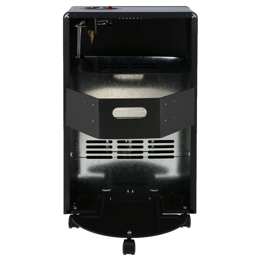 El calentador está equipado con tres ajustes de calor diferentes: 1,4 kW, 2,8 kW y 4,2 kW, para que pueda ajustar la temperatura según sea necesario. El consumo de gas es de 305 g/h a una potencia máxima de 4,2 kW. Para facilitar el encendido, el dispositivo está equipado con encendido piezoeléctrico, lo que significa que no tiene que usar cerillas ni encendedores.