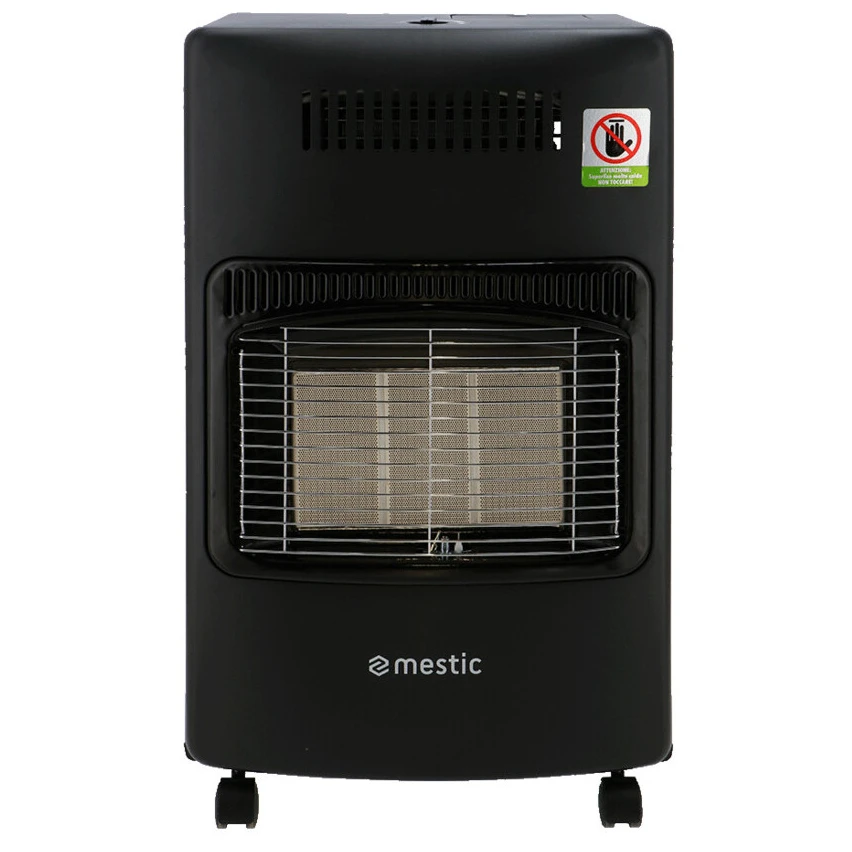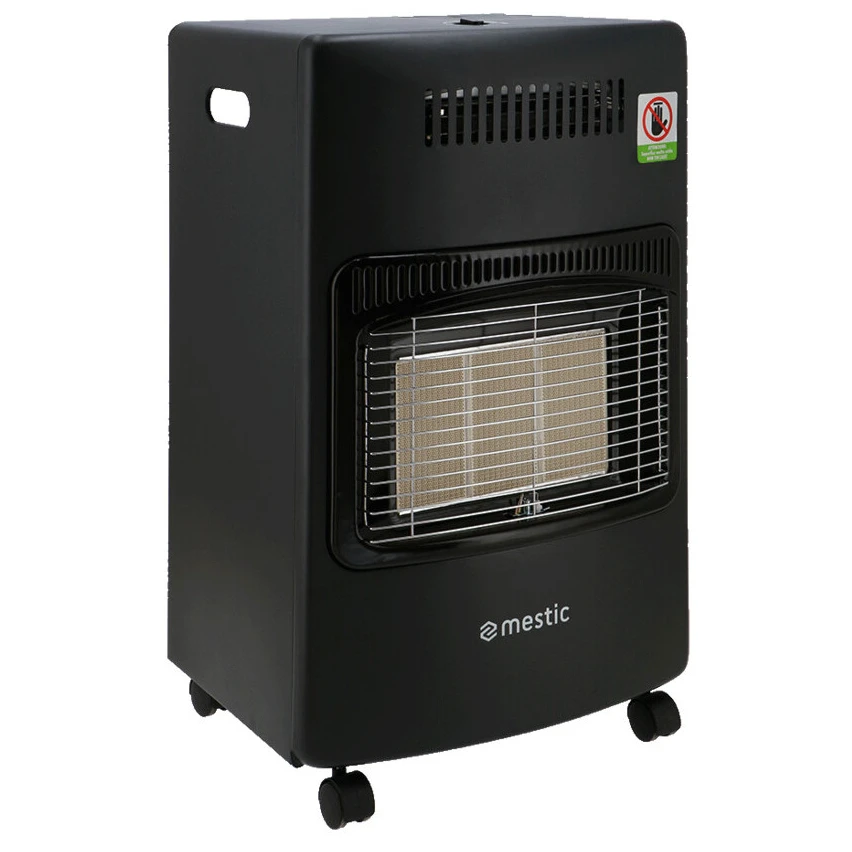 Mestic MRK-100T es un calefactor móvil de gas y eléctrico con calefacción infrarroja y ventilador para una distribución óptima del calor.