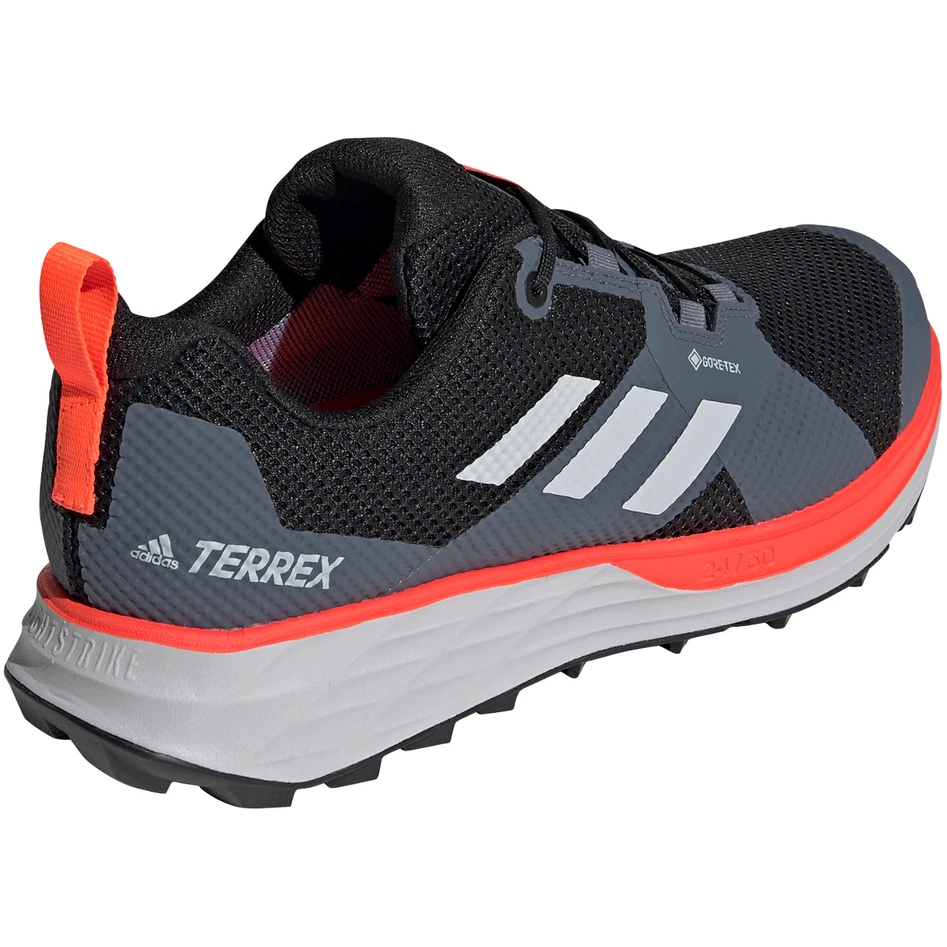 Laszapatillas para correr para hombre Terrex Two Gtx de Adidas son la solución ideal para carreras más largas en entornos desconocidos. Las superficies mojadas, el barro resbaladizo y los terrenos rocosos no pueden ponerte en peligro. La parte superior de malla y la construcción más ancha favorecen el movimiento natural y se adaptan a la forma del pie. La suela de goma Continental garantiza un excelente agarre en cualquier superficie y una zancada segura en terrenos rocosos o resbaladizos. La membrana impermeable Gore-Tex mantiene los pies secos incluso en rutas húmedas y embarradas.