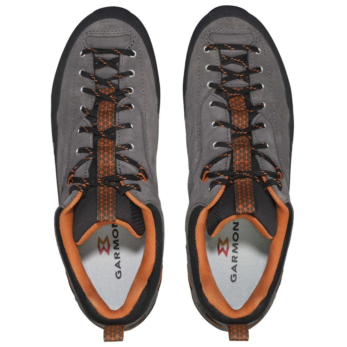 La tecnología ADD, típica de Garmont, donde el diseño y la funcionalidad de la estructura están subordinados a la anatomía del pie humano, garantizará que el zapato se ajuste como un guante. La lazada, a través de los ojales metálicos, hasta la puntera aumenta la estabilidad en los pies pequeños y permite una mayor adaptabilidad a los diferentes tipos de pie. el sistema "Heel Lock", por el que el talón se cierra contra movimientos no deseados mediante cordones, evita la aparición de ampollas. Un tacón de goma protege las zonas expuestas de la parte superior y un estabilizador de PU incrustado en el talón sirve para aumentar la estabilidad y la comodidad al caminar.