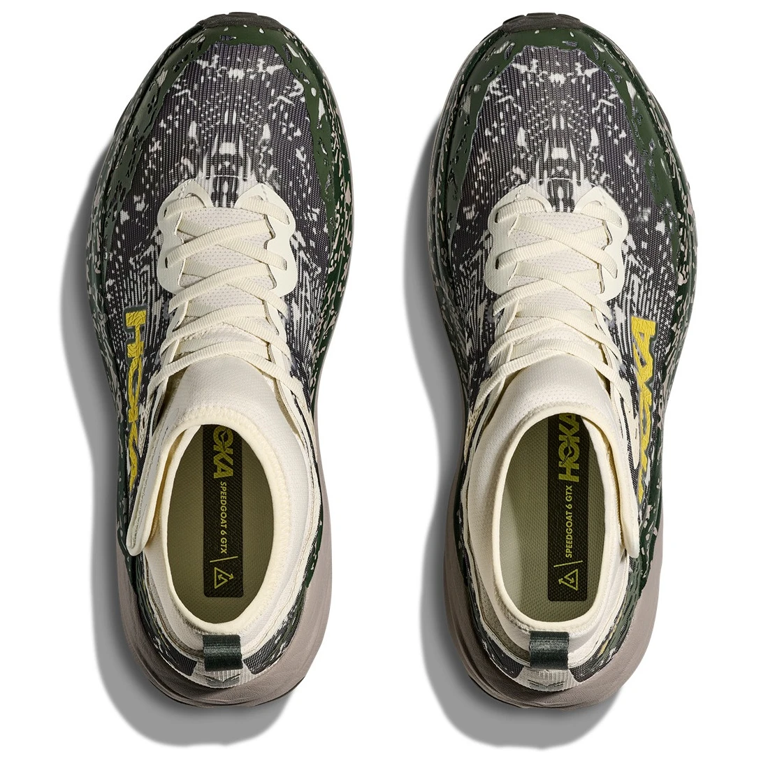 Las zapatillas de hombre Hoka M Speedgoat 6 Mid Gtx ofrecen una membrana impermeable Gore-Tex, suela Vibram® Megagrip y entresuela CMEVA con una cómoda plantilla de espuma EVA.