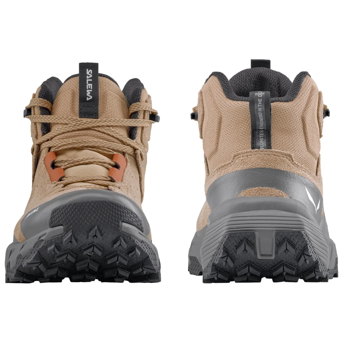 La entresuela amortiguada de espuma EVA se encarga de la comodidad en cada paso, devolviendo energía al impulso y amortiguando eficazmente los impactos. Para mayor estabilidad en terrenos técnicos, cuenta con un refuerzo de EVA de alta densidad, mientras que el sistema patentado Salewa® 3F conecta la zona del talón, el empeine y el arco, garantizando un movimiento natural y seguro.