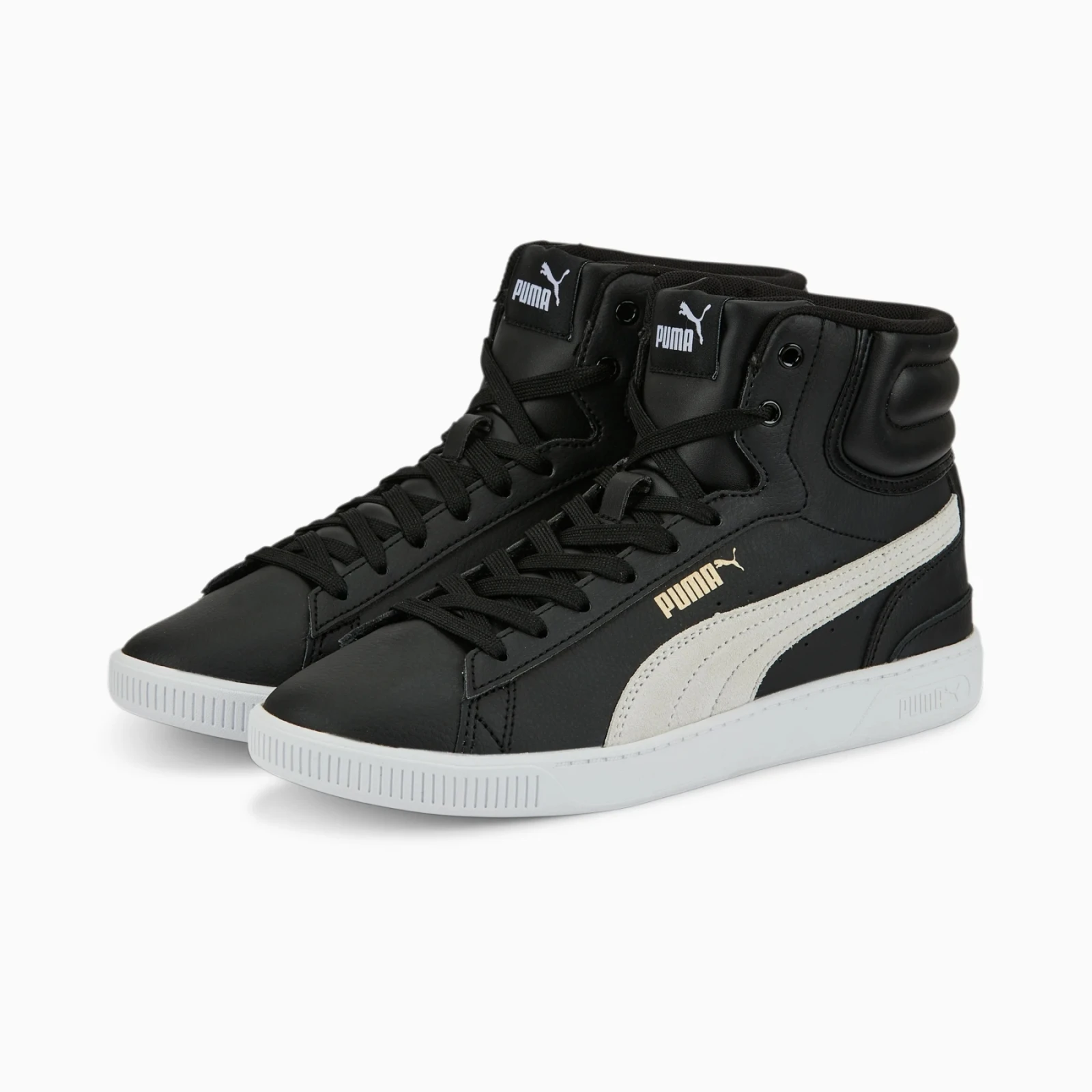 Zapatillas de mujer Vikky v3 Mid L de Puma tiene un estilo específico de cancha de baloncesto para mujeres. La clásica suela de goma se ha rediseñado para ofrecer un aspecto moderno y fresco. La parte superior conserva su popular material de cuero suave, la altura media del cuello y la icónica marca PUMA Formstrip. La parte superior de esta zapatilla está fabricada con al menos un 20% de materiales reciclados como paso hacia un futuro mejor. La plantilla SoftFoam+ proporciona una excelente amortiguación y un confort óptimo en cada paso del día.
