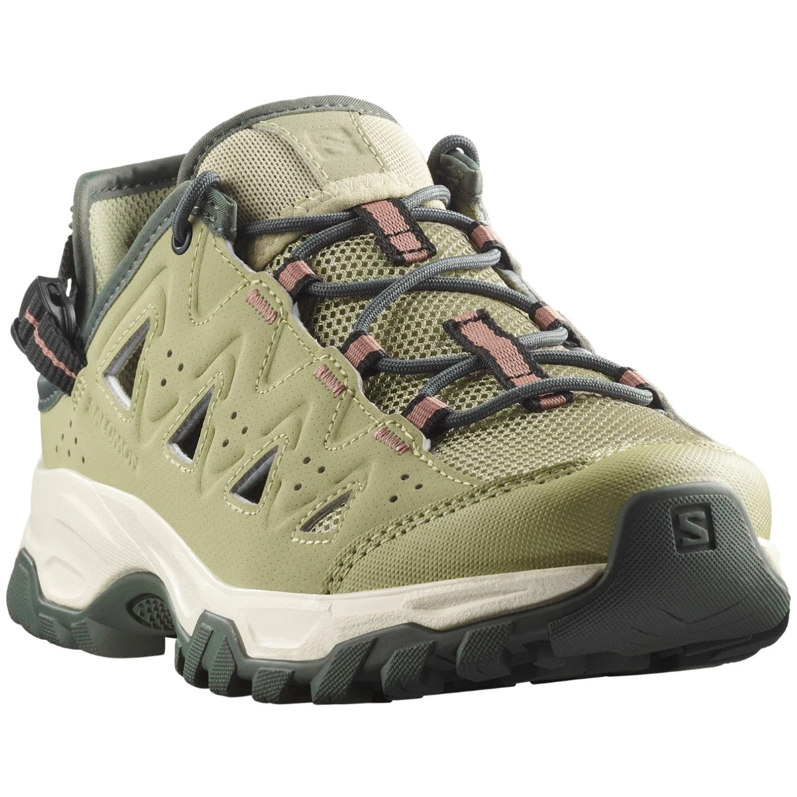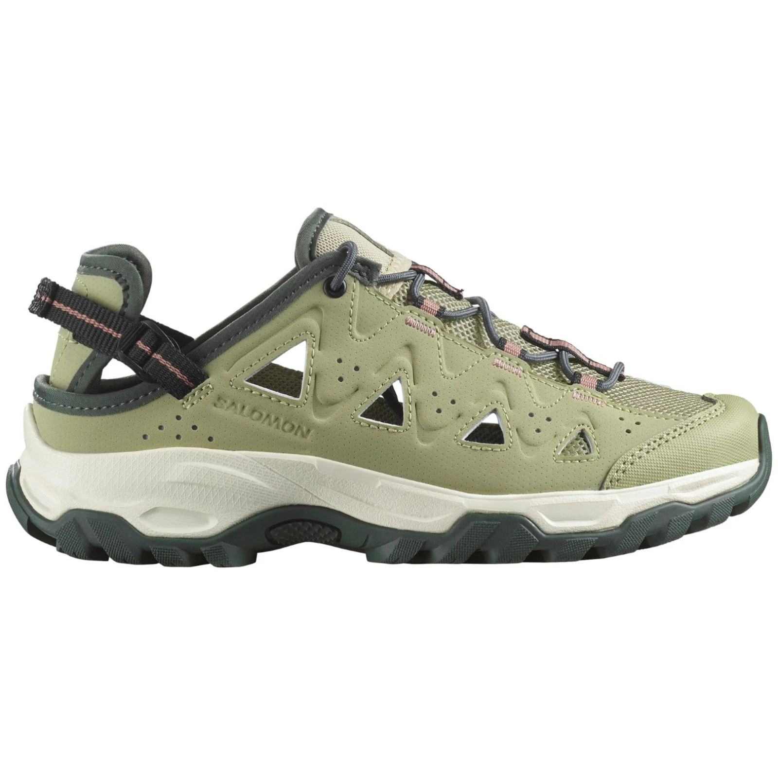 Loszapatos de mujer Alhama W de Salomon tienen un perfil bajo y un tacón caído. El calzado proporciona una gran transpirabilidad y comodidad, pero también protección y una estabilidad adecuada. Son ideales para viajes al campo y para vestir de sport en la ciudad, también son adecuados para el agua. La parte superior de la zapatilla es de material sintético con tecnología Sensifit, que garantiza comodidad y estabilidad envolviendo el pie.