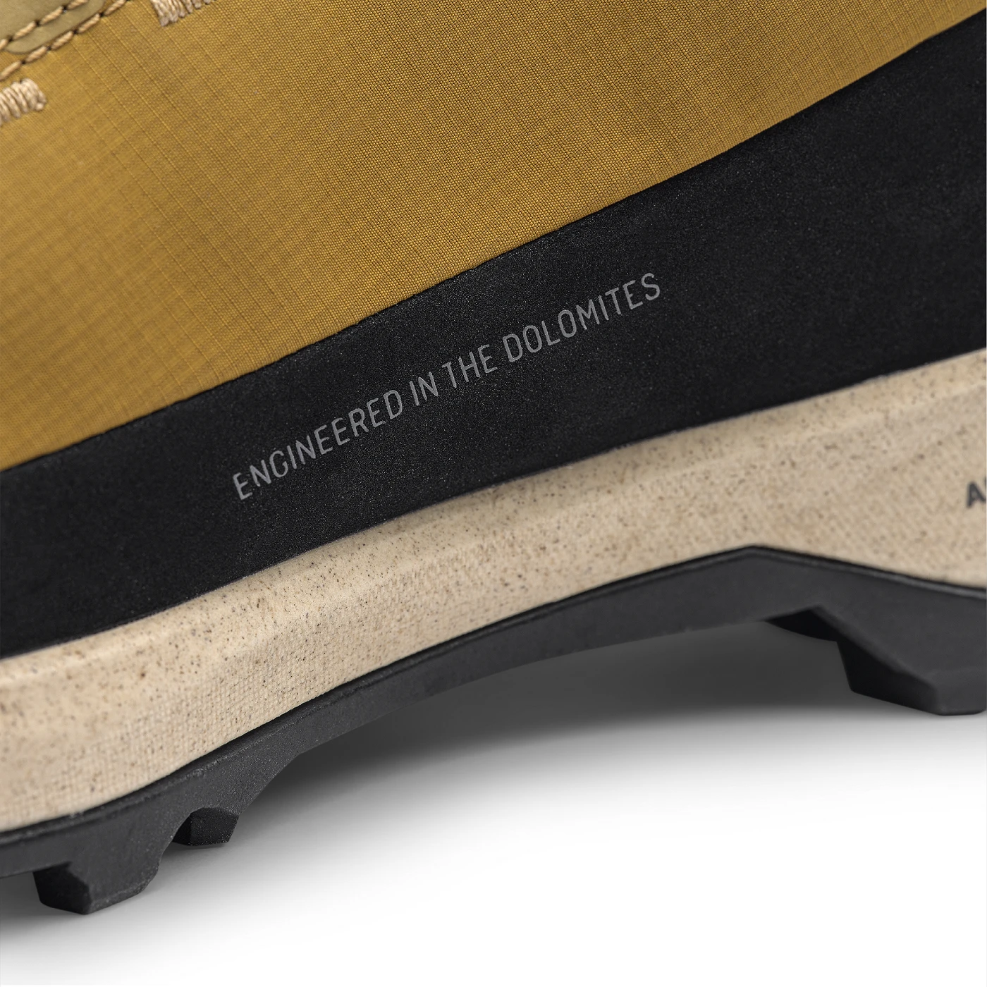 La entresuela ergonómica Alpine Hemp Midsole, en combinación con el talón Anti-rock, absorbe de manera excelente los golpes y los pasos sobre una superficie rocosa dura, lo cual sus pies seguramente agradecerán en caminatas largas. La fijación 3F en la zona del empeine y el tobillo y el cordón de escalada hasta la punta del zapato con ayuda de cordones de Kevlar permiten apretar el zapato con firmeza en terrenos difíciles, manteniendo su flexibilidad. La lengua se superpone al apretar la bota, por lo que no forma pliegues ni aprieta. Los zapatos también tienen un estabilizador del talón y una puntera sólida para ayudar a caminar con confianza. La suela POMOCA Alpine Trekker aporta tracción perfecta, por lo que estará seguro de pisar nieve, hielo y piedras mojadas.