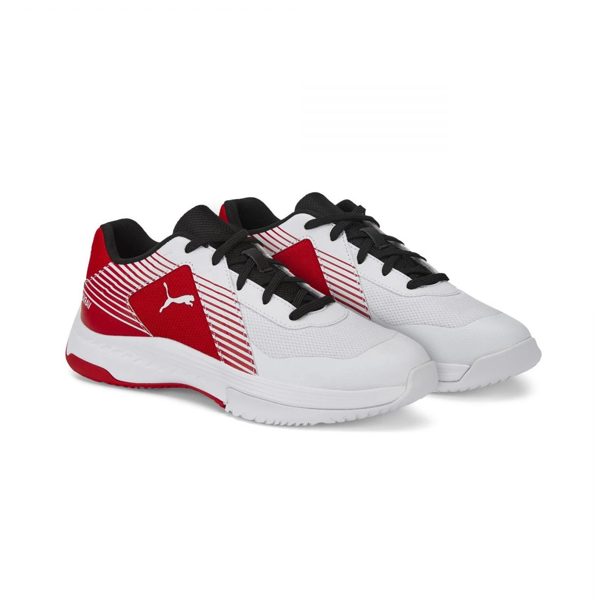 Los zapatos cómodos para niñas y niños Varion Jr de Puma son una ayuda versátil en todas las actividades deportivas. La parte superior está hecha de una combinación de malla transpirable y poliuretano sintético, mientras que la entresuela está hecha de espuma EVA de alto rendimiento. La tecnología de entresuela blanda y un nuevo patrón de agarre de goma están diseñados para aumentar tu aceleración y velocidad.