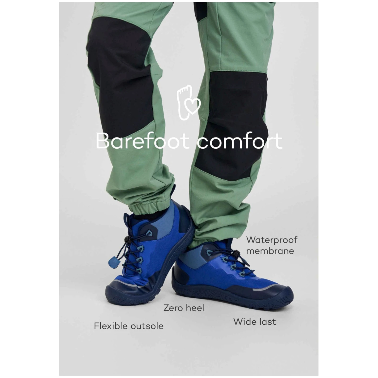 Las zapatillas barefoot universales para niños Reima Sankari son ideales para pasear por la ciudad o la naturaleza, incluso con mal tiempo.