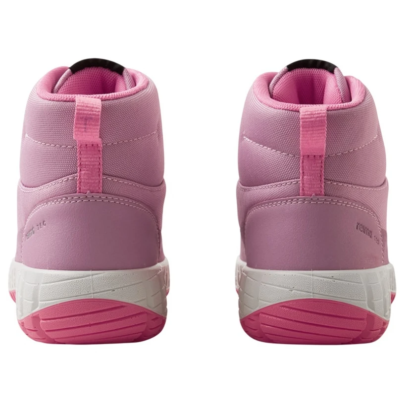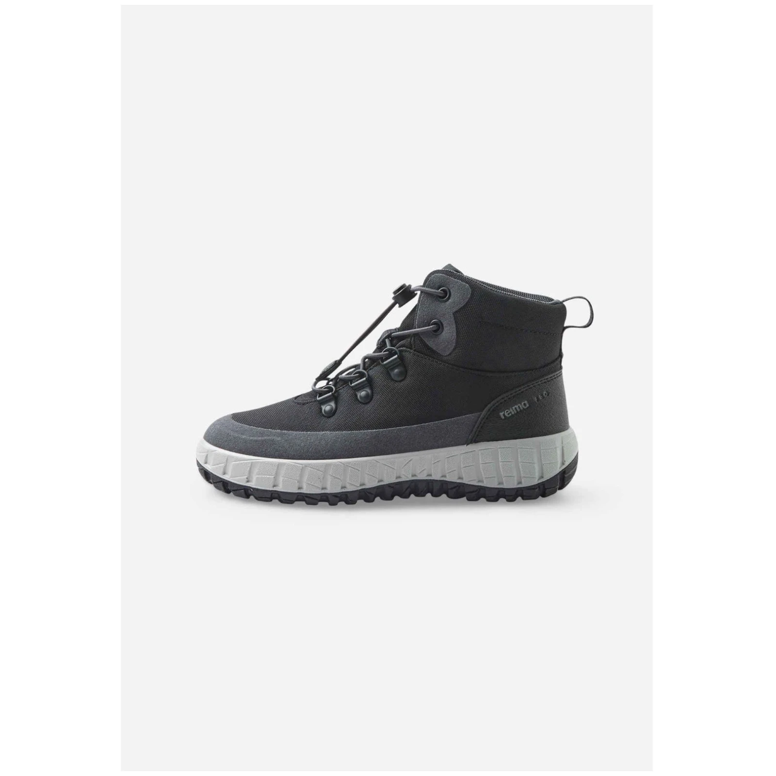 Botines infantiles Wetter 2.0 de la marca Reima con membrana Reimatec. La parte superior está hecha de material sintético impermeable transpirable y textil y la suela es de poliuretano flexible. Los zapatos tienen un forro de algodón y plantillas extraíbles con superficie textil y estampado Happy Fit, que facilita la elección de la talla óptima. El producto no contiene compuestos fluorados ni materiales de origen animal.