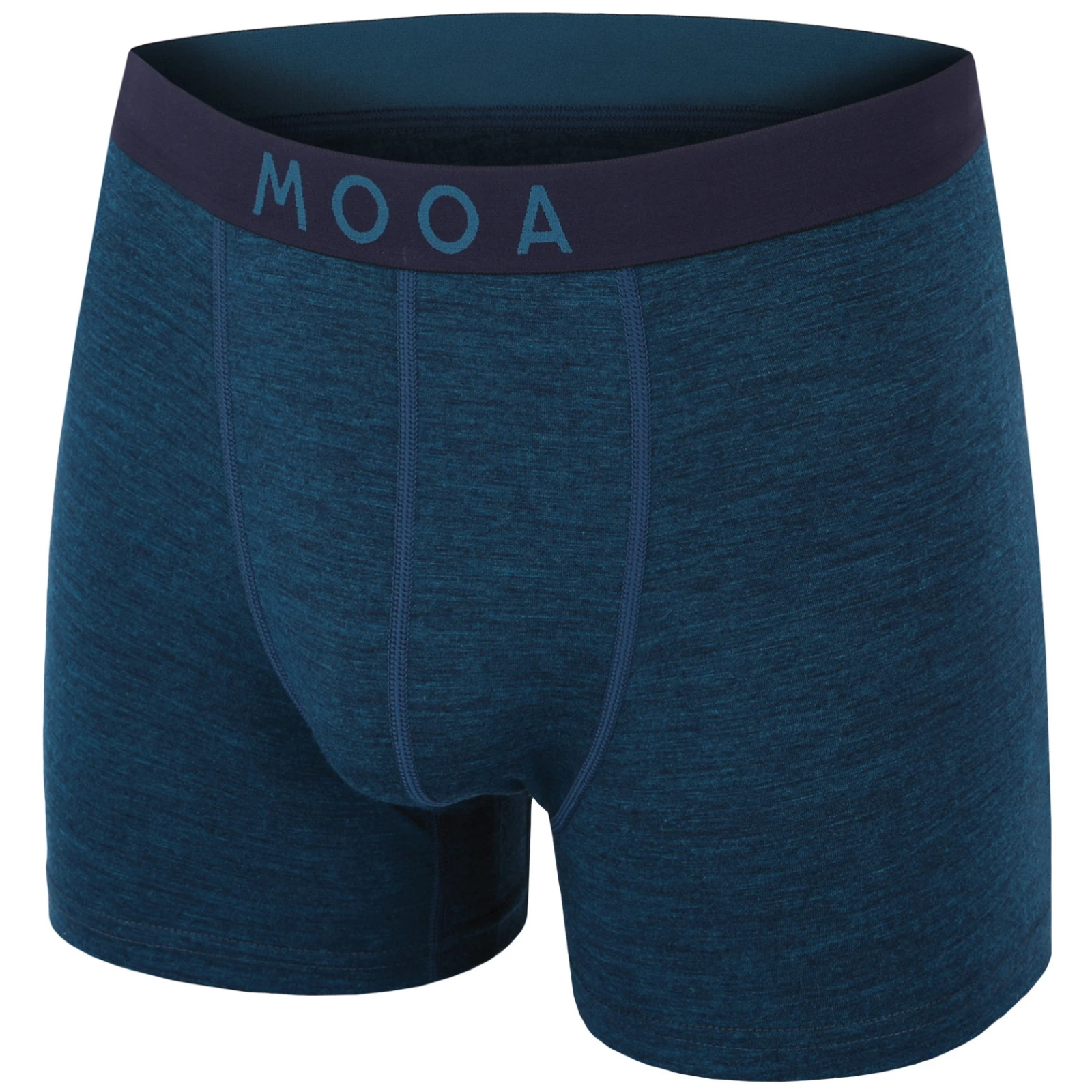 Los bóxers para hombre MOOA MerinoSilk 4in combinan lo mejor de los materiales naturales, la suavidad de la seda y las propiedades funcionales de la lana merino. Esta combinación única crea la tecnología MerinoSilk, que ofrece una comodidad, transpirabilidad y regulación de la temperatura excepcionales. La lana merino absorbe la humedad y calienta cuando hace frío, mientras que la seda aporta suavidad al material y una sensación de lujo al llevarlos.