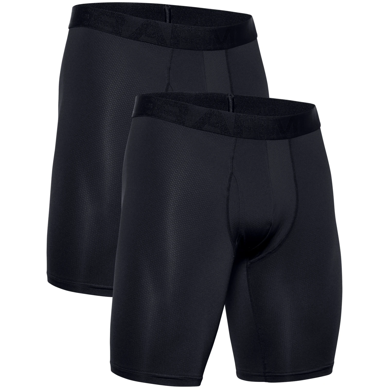 Los calzoncillos bóxer Tech Mesh 9in 2 Pack para hombre están confeccionados con un tejido suave y transpirable que proporciona una sensación más natural al llevarlos puestos. Los calzoncillos no tienen costuras y maximizan así la comodidad durante todo el día. La tecnología 4-Way Stretch permite una mayor flexibilidad en cualquier prenda. La cintura elástica se ajusta en su sitio y lleva el nombre de la marca. El paquete contiene dos boxers.