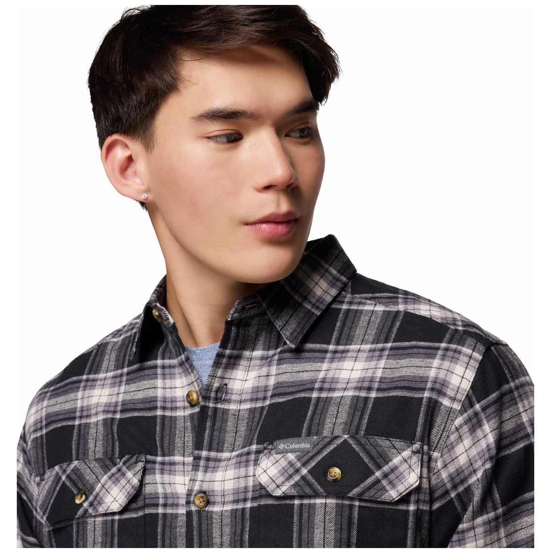 La camisa de franela elástica Flare Gun™ Columbia para hombre con tecnología Omni-Wick, un dobladillo trasero extendido y un bolsillo con botón en el pecho brinda comodidad, flexibilidad y eliminación del sudor del cuerpo.