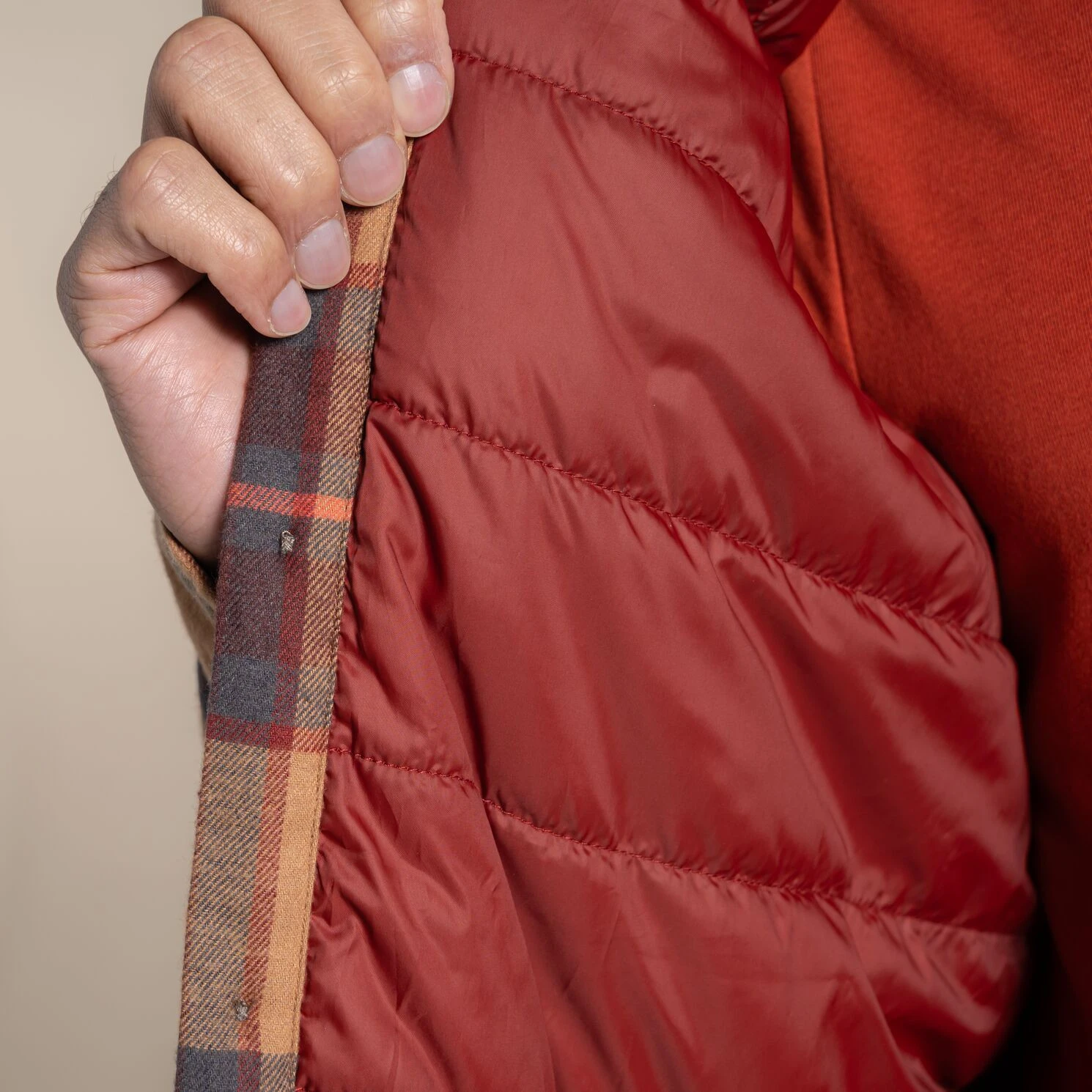 La camisa acolchada es una opción ideal para los días en que la excursión al aire libre se alarga hasta una tertulia nocturna. El estiloso diseño a cuadros de poliéster reciclado y algodón esconde una ligera capa aislante de fibras huecas que ayuda a mantener el calor incluso cuando hace más frío.