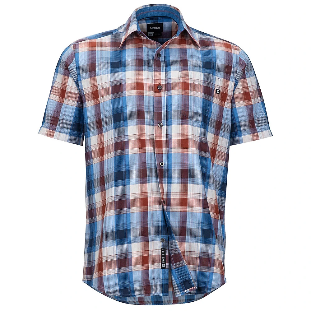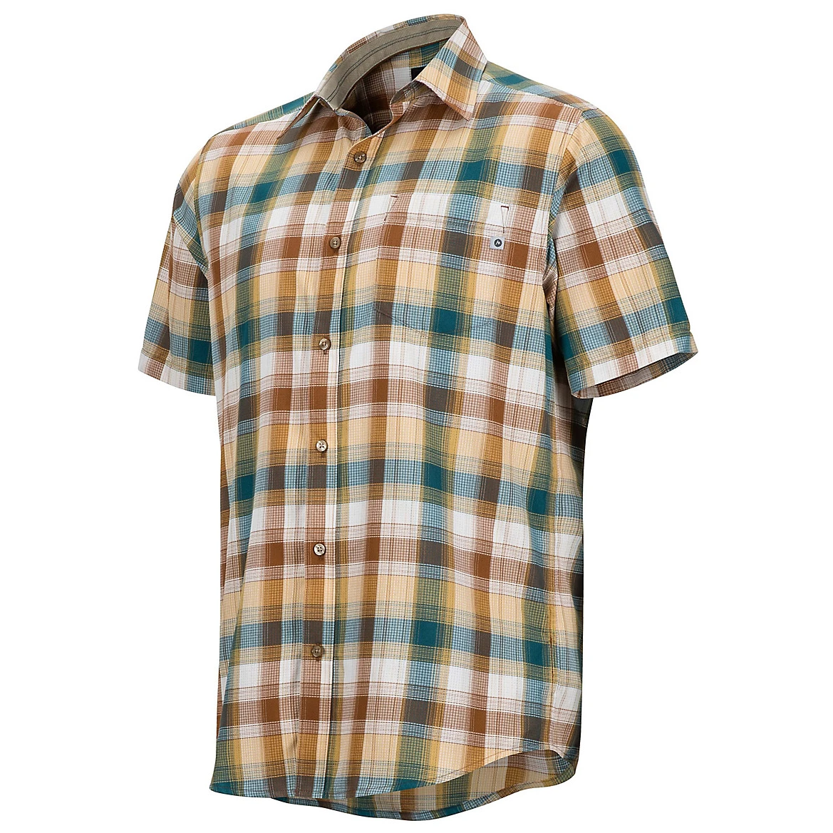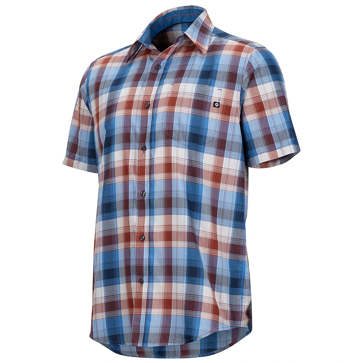 LaCamisa para hombre Notus SS de Marmot de manga corta está confeccionada con un material muy transpirable que garantiza un intercambio de aire constante. Además, incluye tecnología de refrigeración, para que te sientas cómodo incluso con temperaturas más cálidas. El tejido es muyligero, permeable al aire y protege de los dañinos rayos ultravioleta (factor de protección 25). Todo está unido por duraderas costuras planas y hay un discreto bolsillo en la zona del pecho.