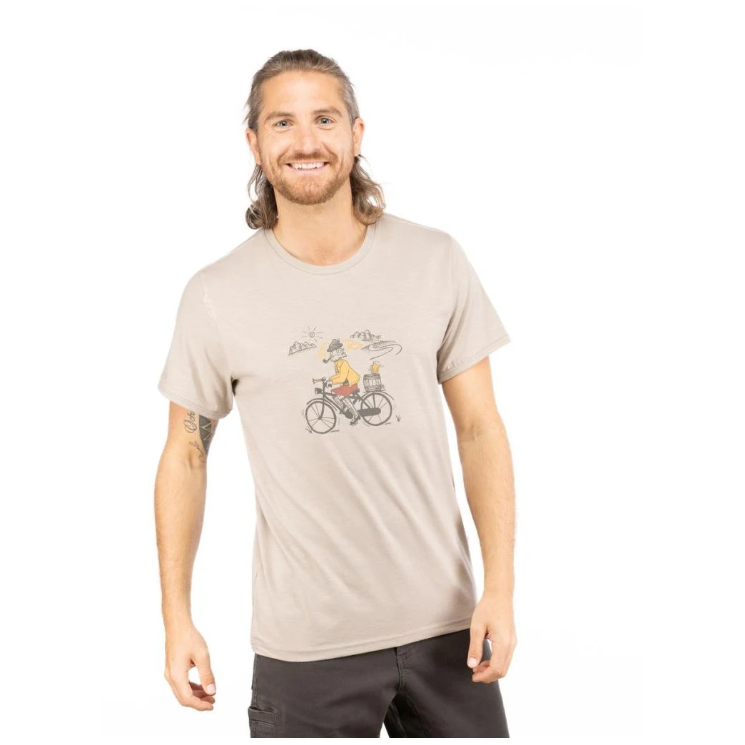 Ya sea para viajes desafiantes a un rocódromo o para ir a una cafetería para pasar el rato con amigos, la camiseta súper cómoda hecha de materiales naturales Tyrolean Trip de la marca Chillaz es la elección perfecta. Las fibras naturales Tencel se combinan de forma única con algodón y Lycra para regular la humedad y reducir el crecimiento bacteriano. La calidad es palpable y el corte está diseñado para adaptarse a la mayoría de las figuras masculinas.